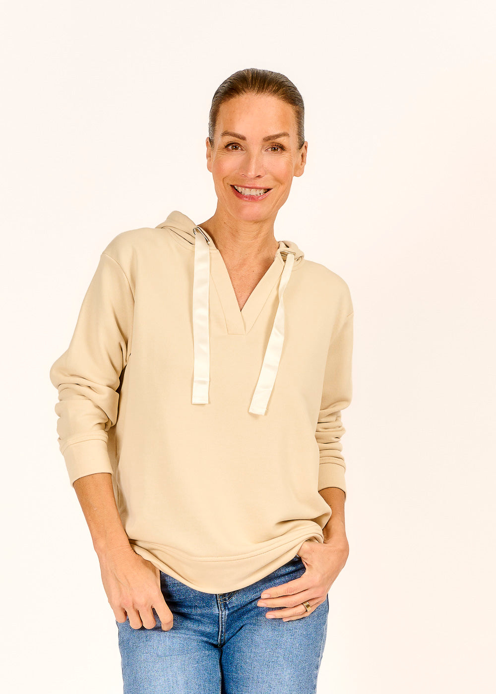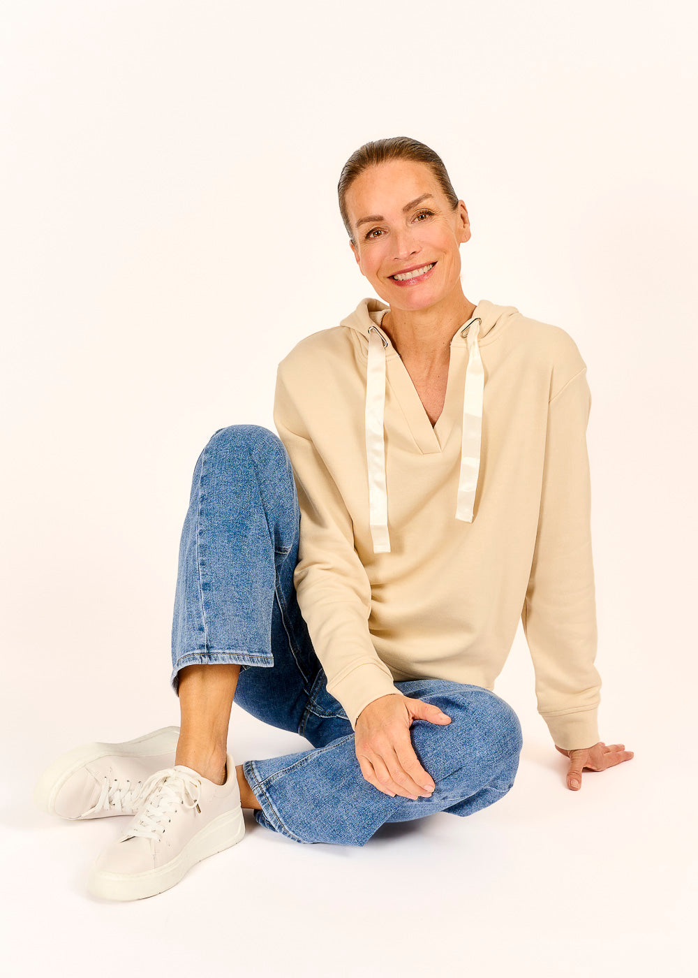 Ein kuscheliger Sweathoody in zeitlosem Beige, der dir mit der dezenten „Sogno“-Aufschrift auf der Kapuze ein Stück Traumgefühl verleiht. Perfekt für entspannte Tage, an denen du Komfort und Style kombinieren möchtest.