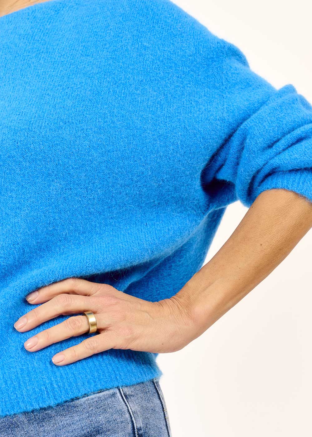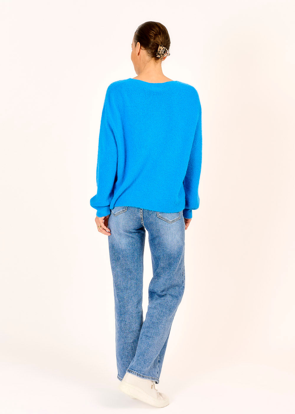 Kuschelig, weich und einfach zum Wohlfühlen – unser Wohlfühlpullover in einem wunderschönen Blau wird dein neues Lieblingsstück. Perfekt für entspannte Tage, an denen du es bequem und stilvoll zugleich haben möchtest.