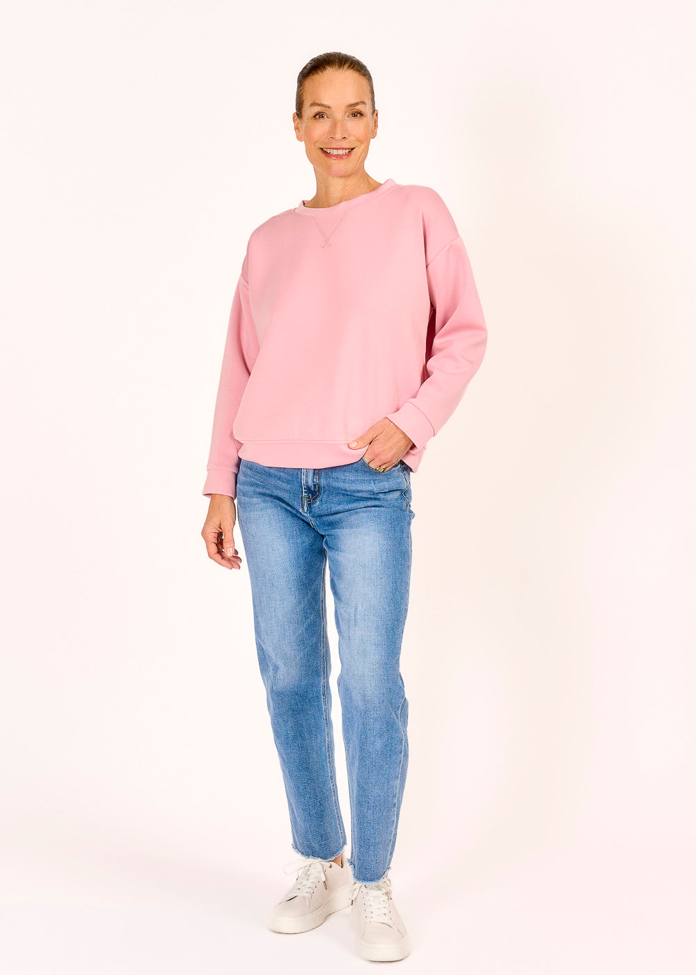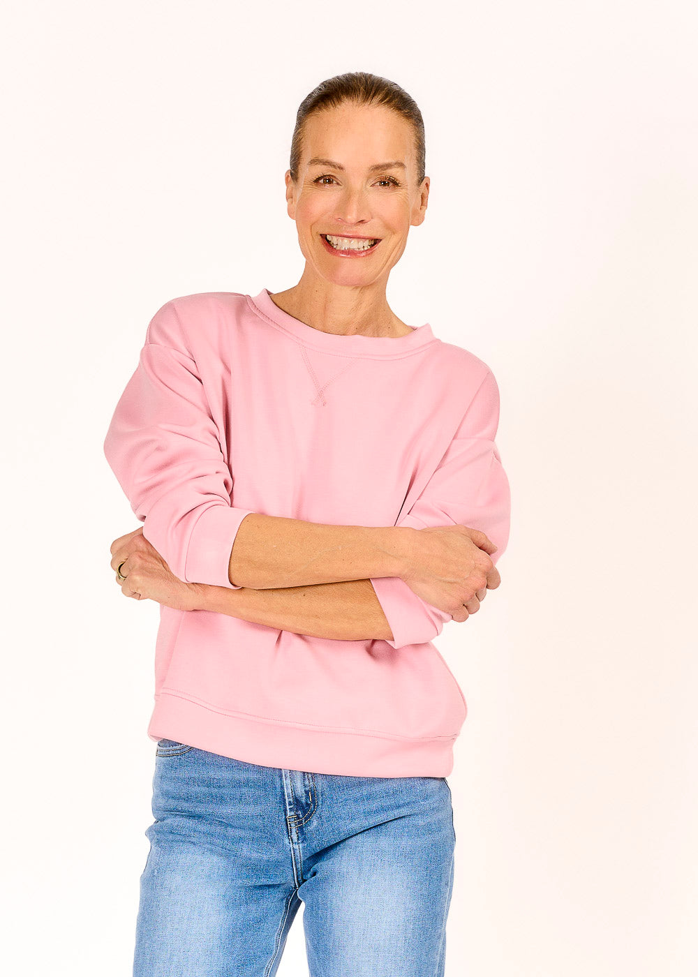 Dieses Lieblingsshirt in zartem Rosa wird schnell zu deinem neuen Lieblingsstück – bequem, zeitlos und einfach perfekt für jeden Tag. Kombiniere es nach Lust und Laune und fühl dich rundum wohl!