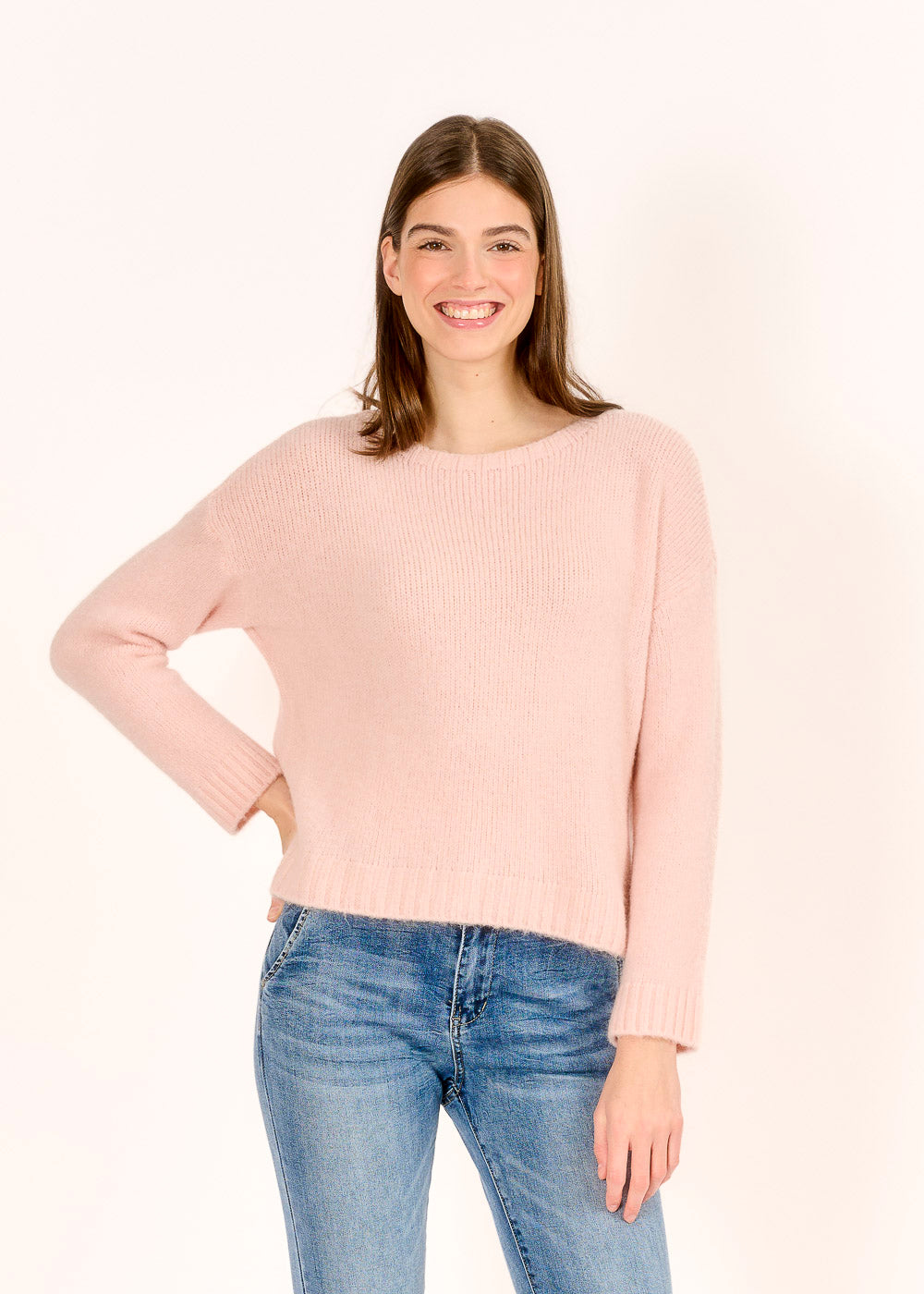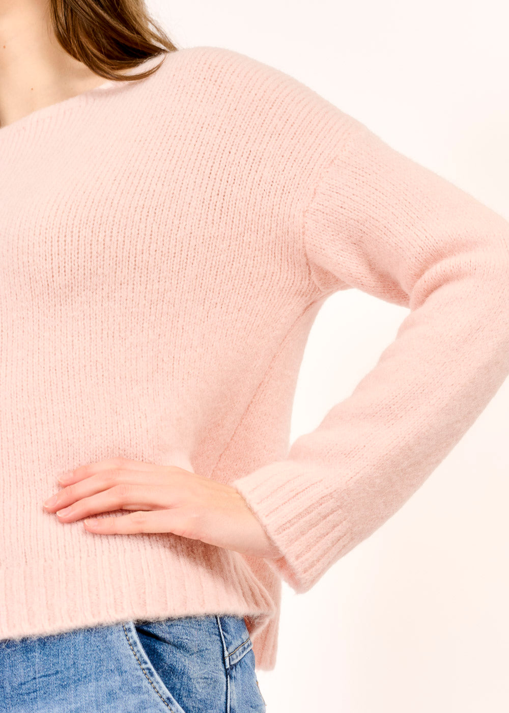 Entdecken Sie unseren kuschelweichen Strickpullover in zartem Rosaton – der perfekte Begleiter für gemütliche Stunden und stilvolle Outfits. Ob zu Jeans oder Rock kombiniert, dieser Pullover verleiht Ihrem Look eine feminine und zeitlose Eleganz.