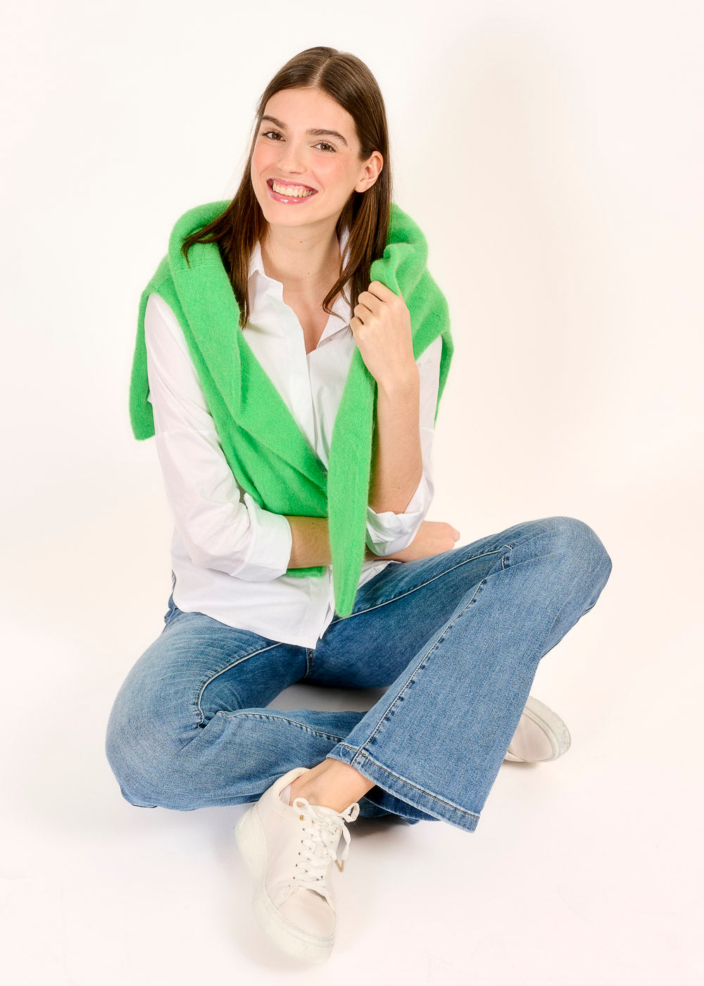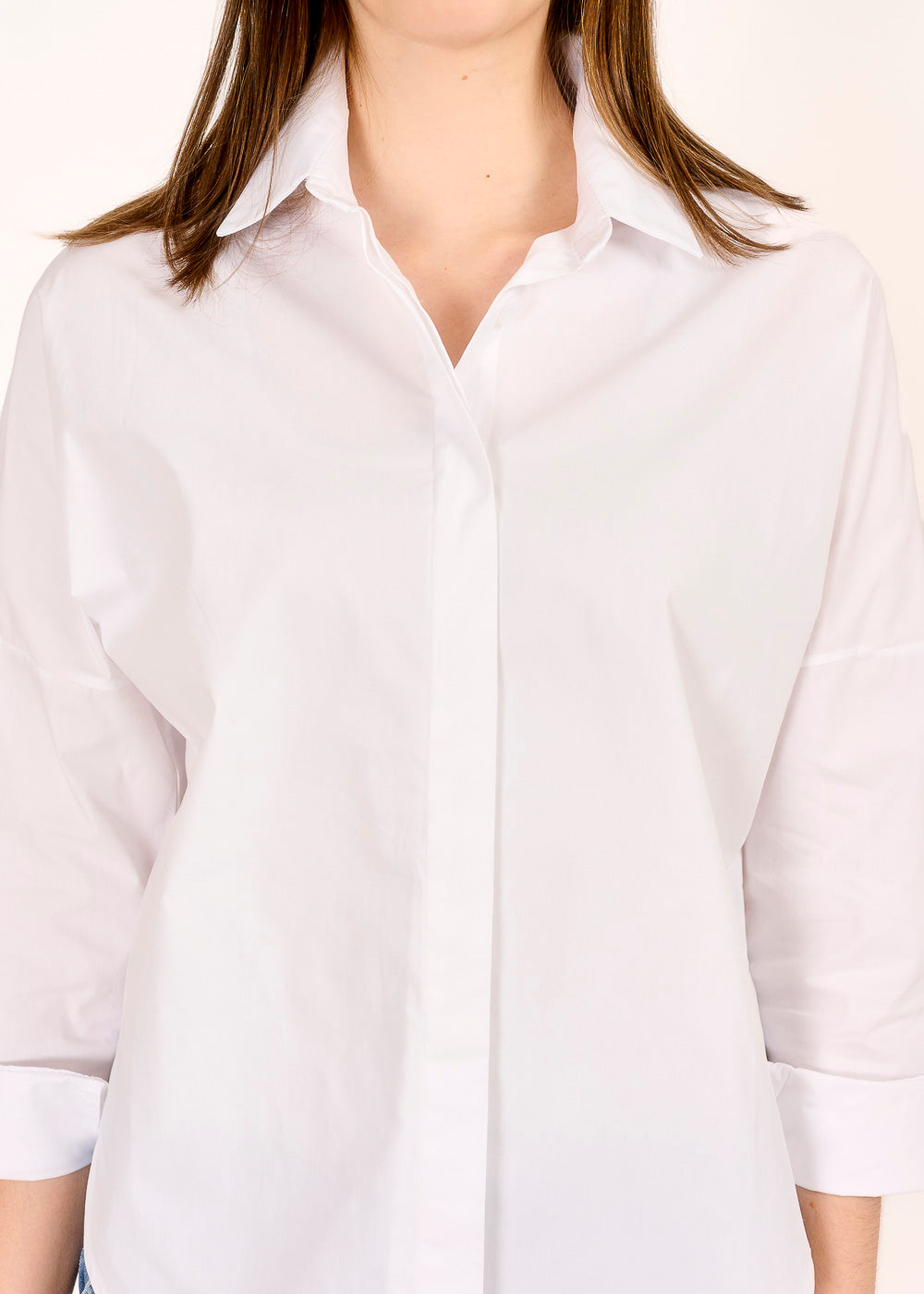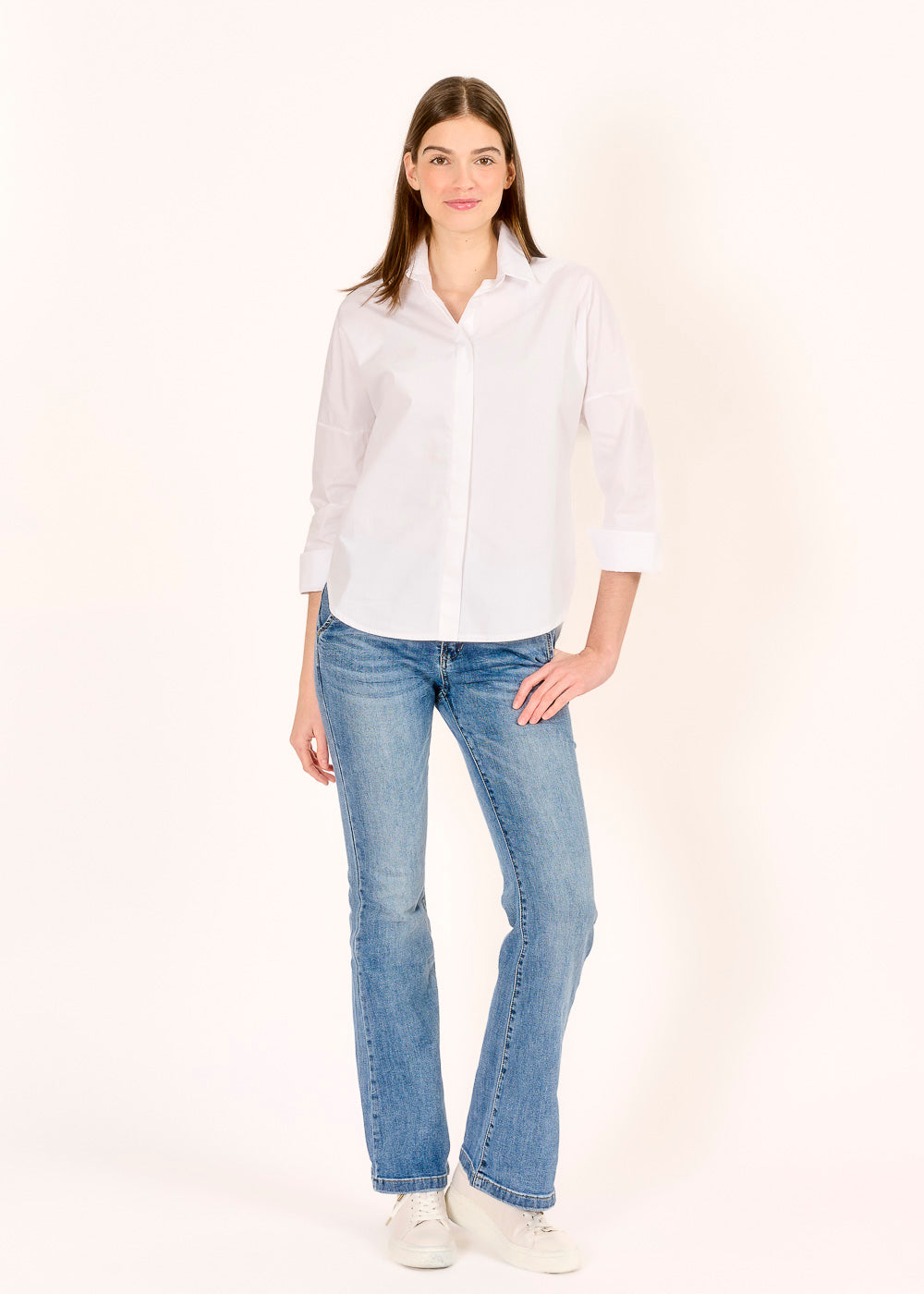 Diese weiße Bluse besticht durch ihre edle Papertouch-Qualität, die ihr eine außergewöhnlich glatte Haptik verleiht – so angenehm wie ein Blatt Papier. Der kleine Kragen und die verdeckte Knopfleiste sorgen für eine klare, zeitlose Optik. Ein vielseitiger Begleiter, der sowohl im Büro als auch zu besonderen Anlässen überzeugt.