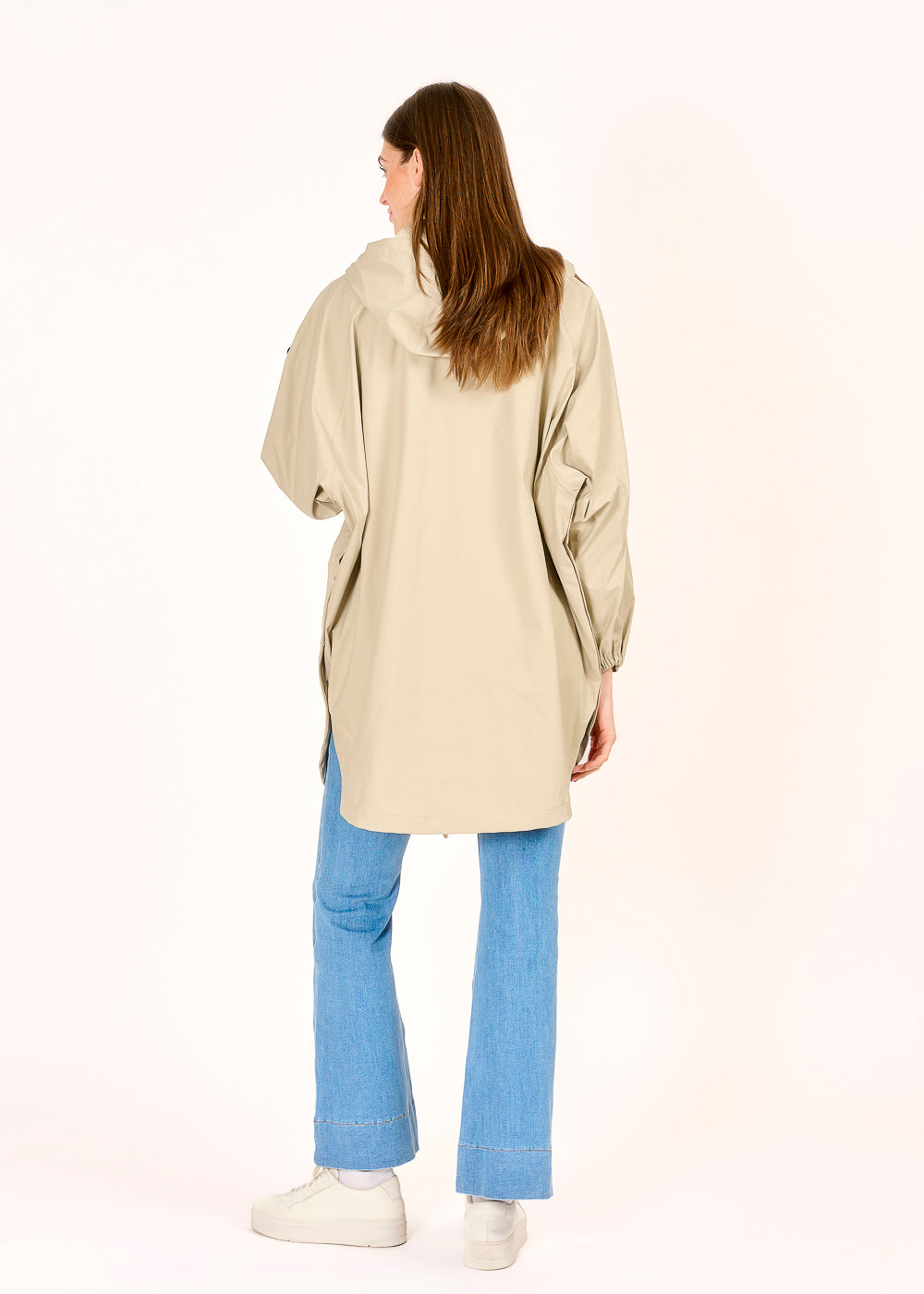 Dieses Regencape in der modernen Farbe Taupe kombiniert Funktionalität mit stilvollem Design. Ausgestattet mit einer Kapuze und einem wasserdichten Reißverschluss bietet es optimalen Schutz bei unbeständigem Wetter. Seitliche Druckknöpfe sorgen für flexible Tragevarianten und zusätzlichen Komfort unterwegs.