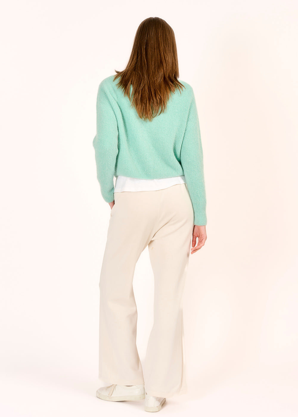 Dieser kurz geschnittene Rippencardigan in trendigem Menta ist ein echtes Highlight für jede Garderobe. Der weiche Stoff schmiegt sich angenehm an und sorgt für maximalen Tragekomfort. Ob über Tops oder Blusen getragen – er verleiht jedem Look eine frische und moderne Note.