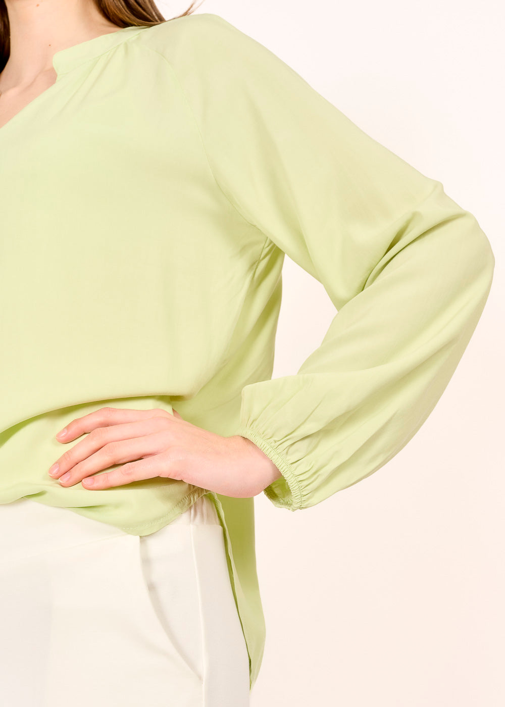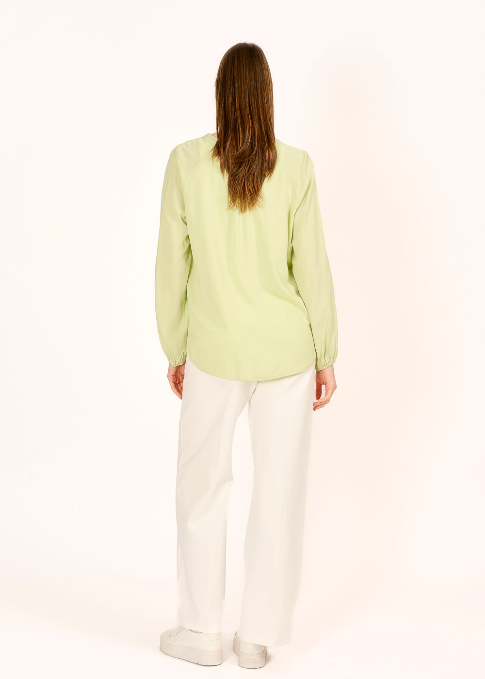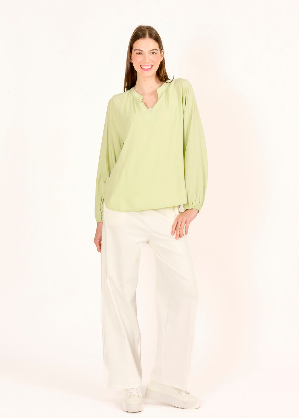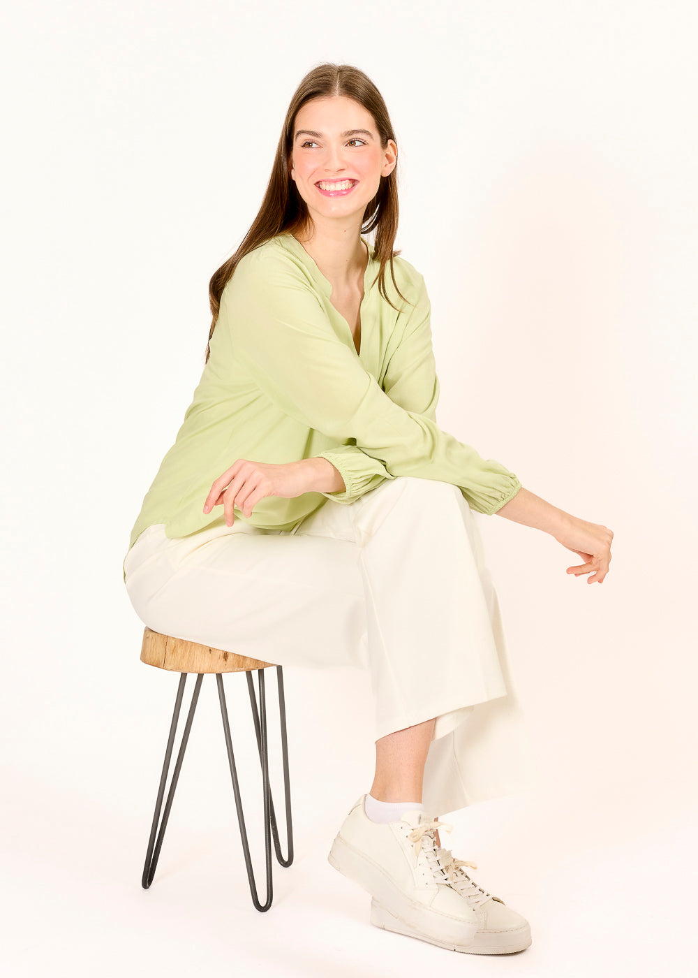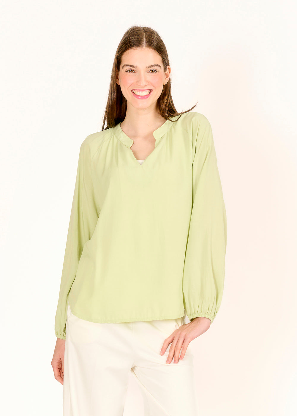 Diese lässige Bluse in der frischen Farbe Menta bringt Leichtigkeit und Stil in deinen Alltag. Der lockere Schnitt sorgt für ein entspanntes Tragegefühl und macht sie zum idealen Begleiter für warme Tage.
