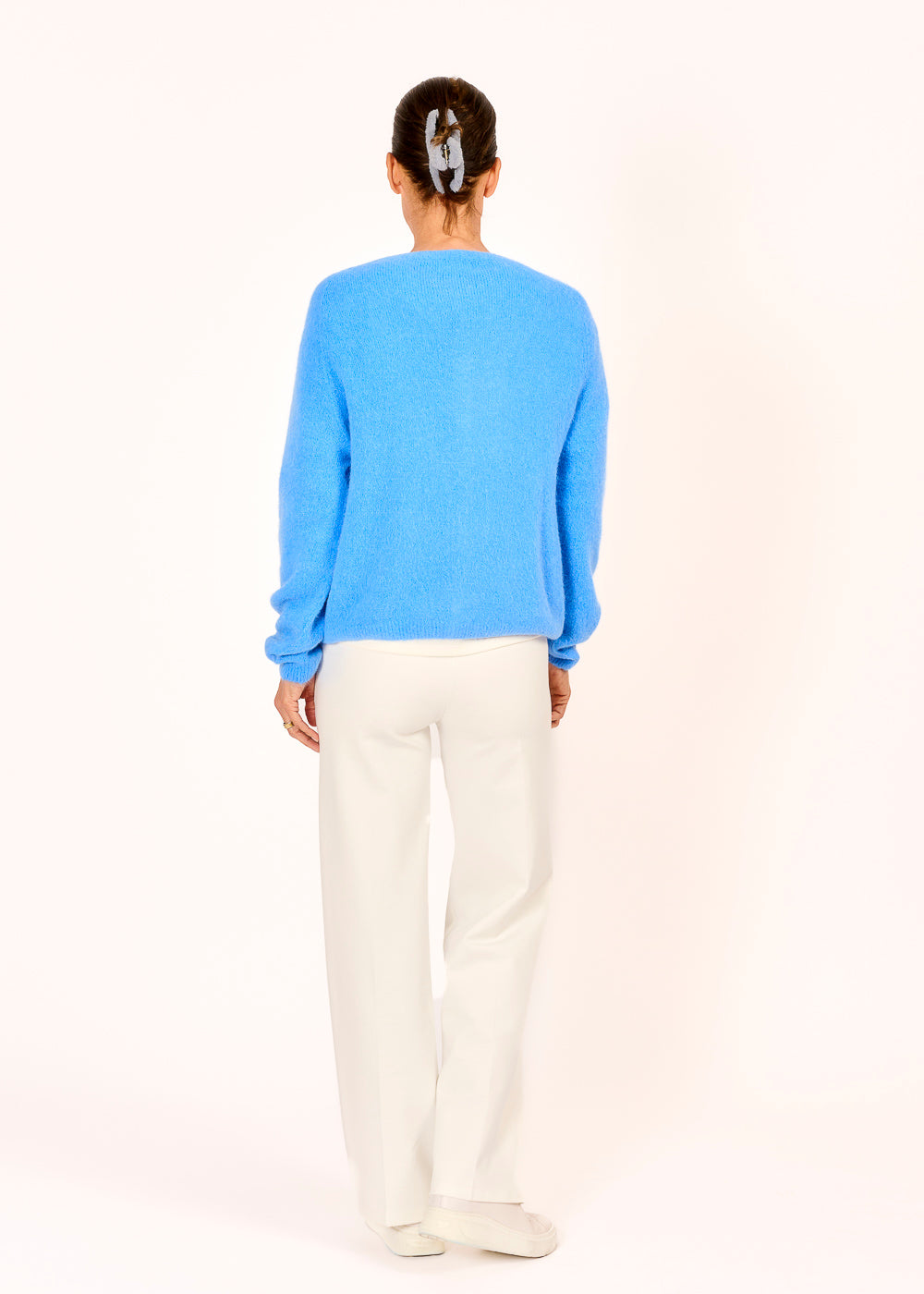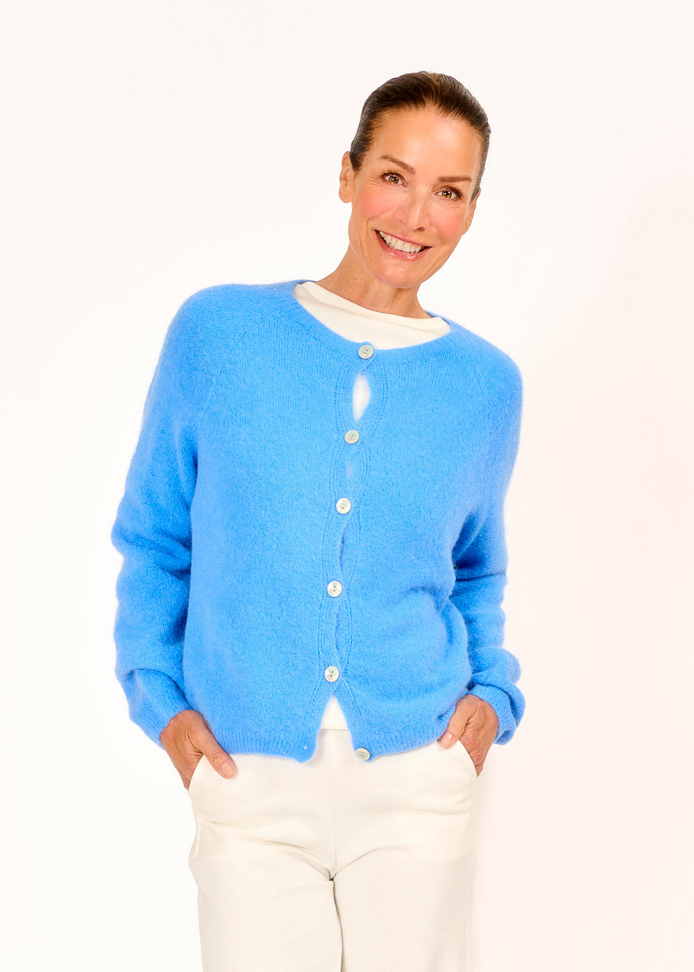 Dieser blaue Cardigan ist die perfekte Alternative zum Pullover und verleiht jedem Outfit eine trendige Note. Der moderne Farbton sorgt für einen frischen Look, während das weiche Material angenehmen Tragekomfort bietet. Vielseitig kombinierbar – ideal für lässige oder elegante Styles!