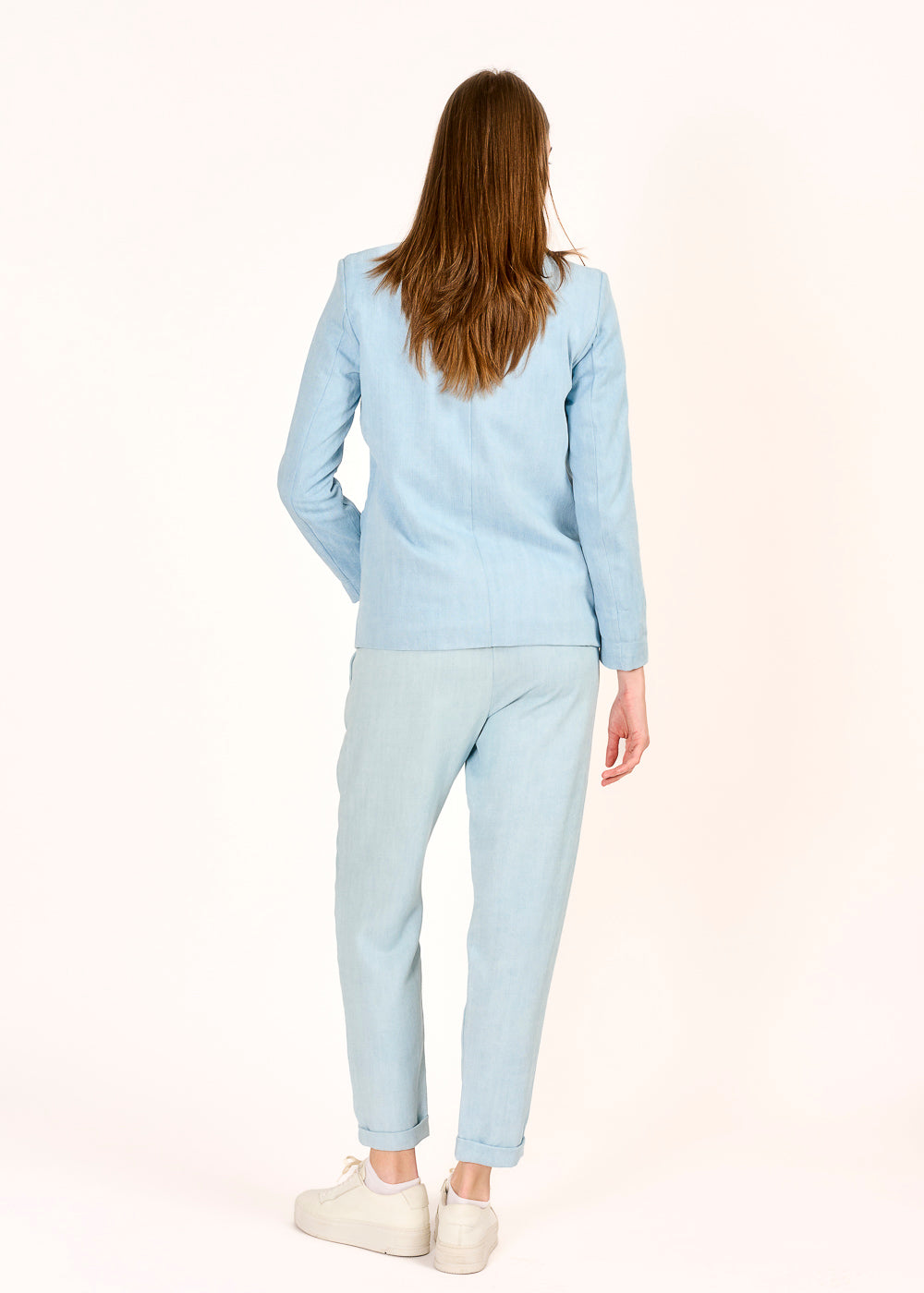 Dieser lässige Blazer in der zarten Farbe Celeste verleiht deinem Look eine frische und moderne Note. Mit seinem entspannten Schnitt ist er der ideale Begleiter für stilvolle Alltagsoutfits oder legere Business-Styles.