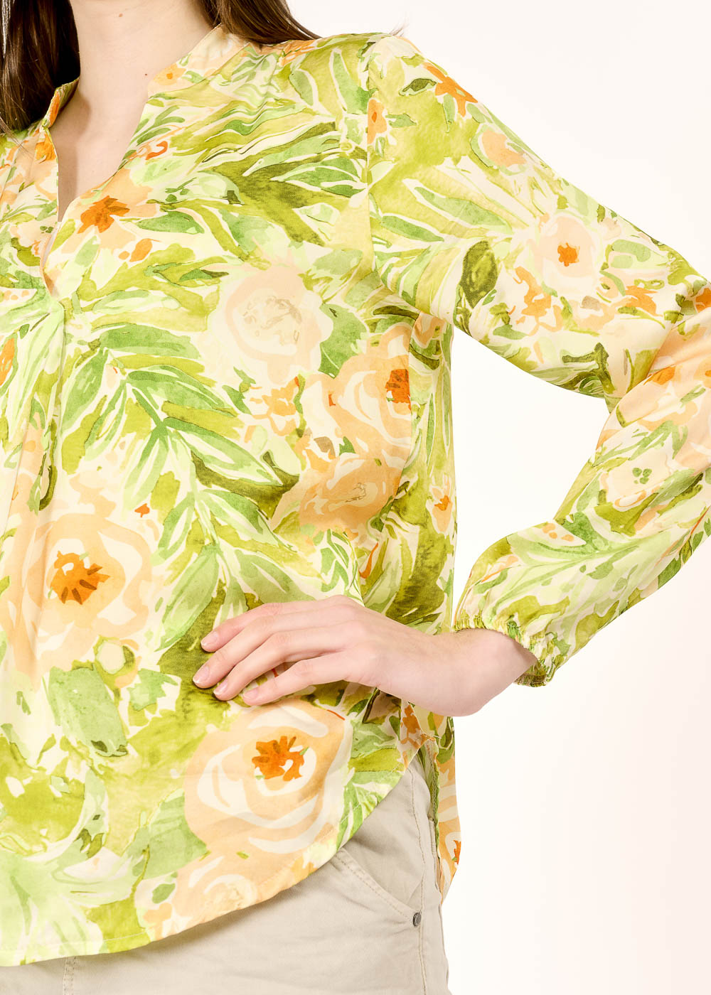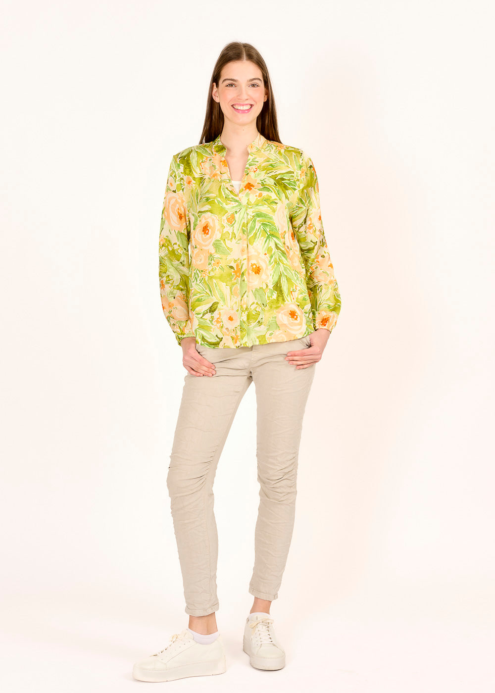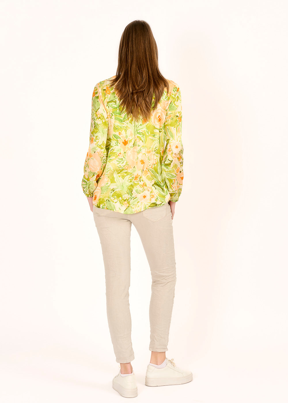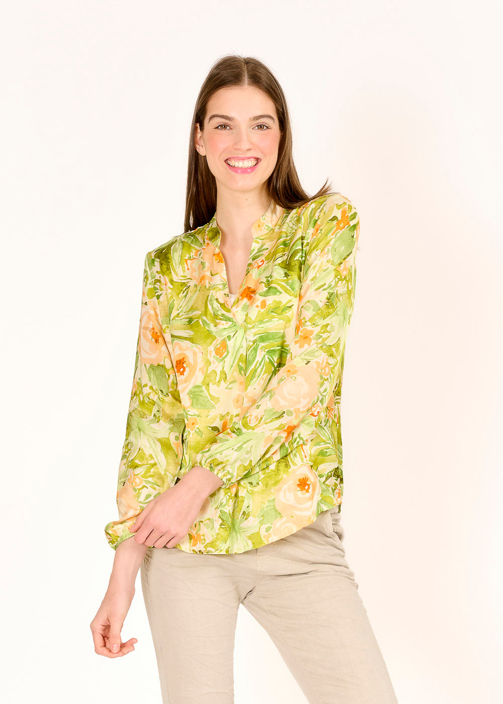 Diese Druckbluse in der Farbe Verde besticht mit ihrem einzigartigen Muster und verleiht deinem Outfit eine elegante, erfrischende Note. Der fließende Stoff sorgt für hohen Tragekomfort und macht sie zu einem vielseitigen Highlight für jeden Anlass.