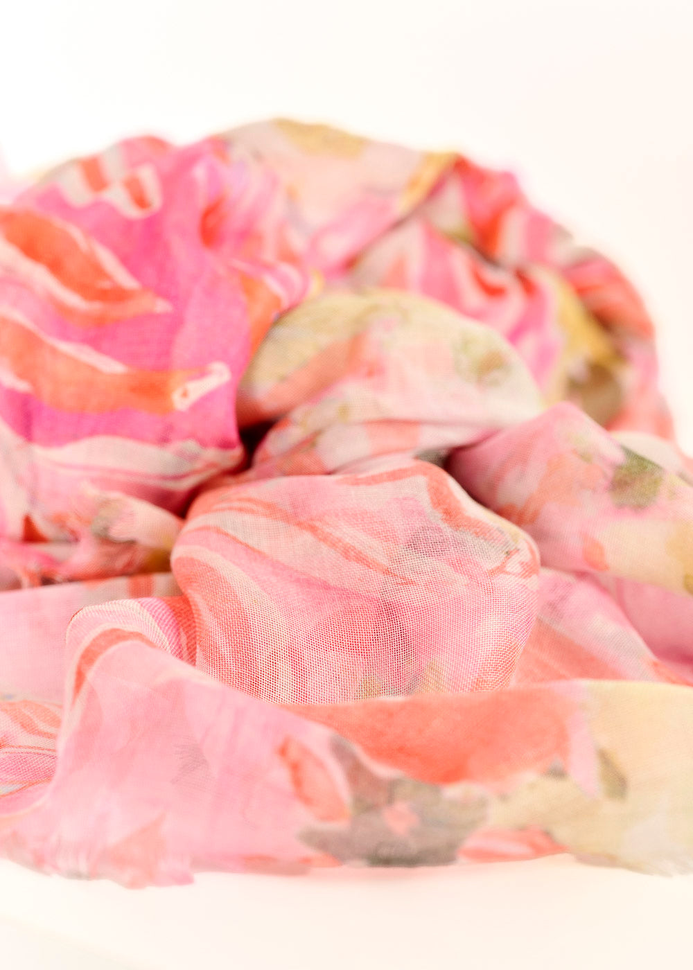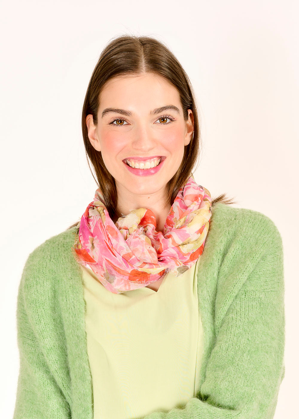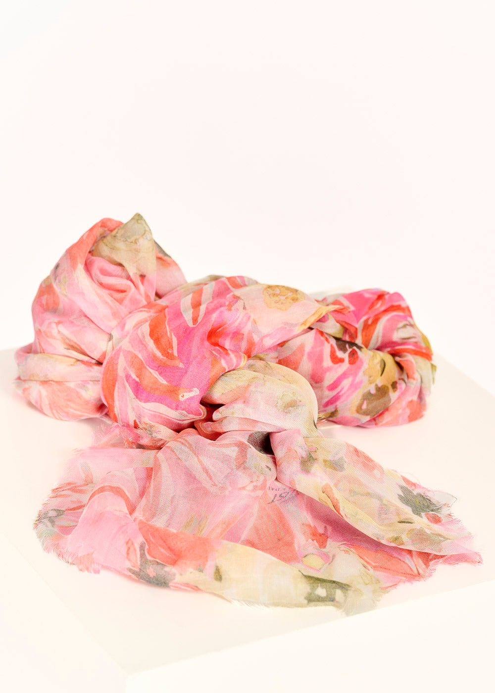 Dieses Tuch mit einem floralen Muster in lebendigem Pink setzt ein fröhliches Highlight in jedem Outfit. Perfekt kombinierbar mit den Outfits mit der Bluse im gleichen Muster für einen harmonischen und stilvollen Look.