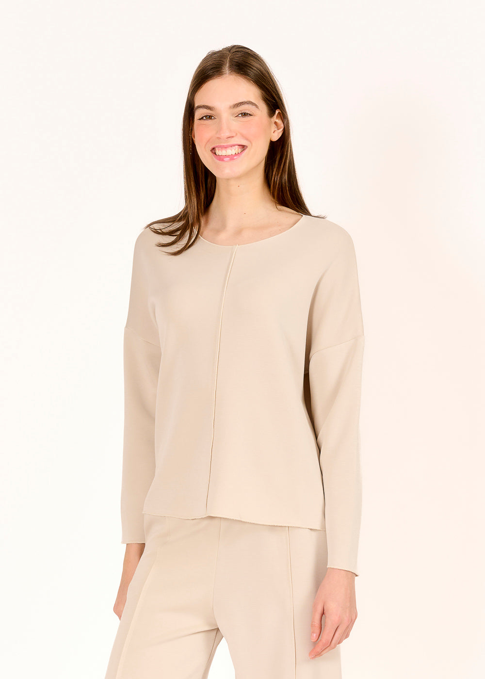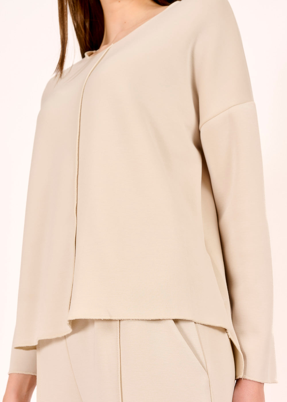 Dieses lässige Shirt in edlem Beige überzeugt mit seiner zeitlosen Farbgebung und einem modernen, verlängerten Rückenteil. Der lockere Schnitt und die elegante Ausstrahlung machen es zum perfekten Begleiter für stilvolle Casual-Looks.