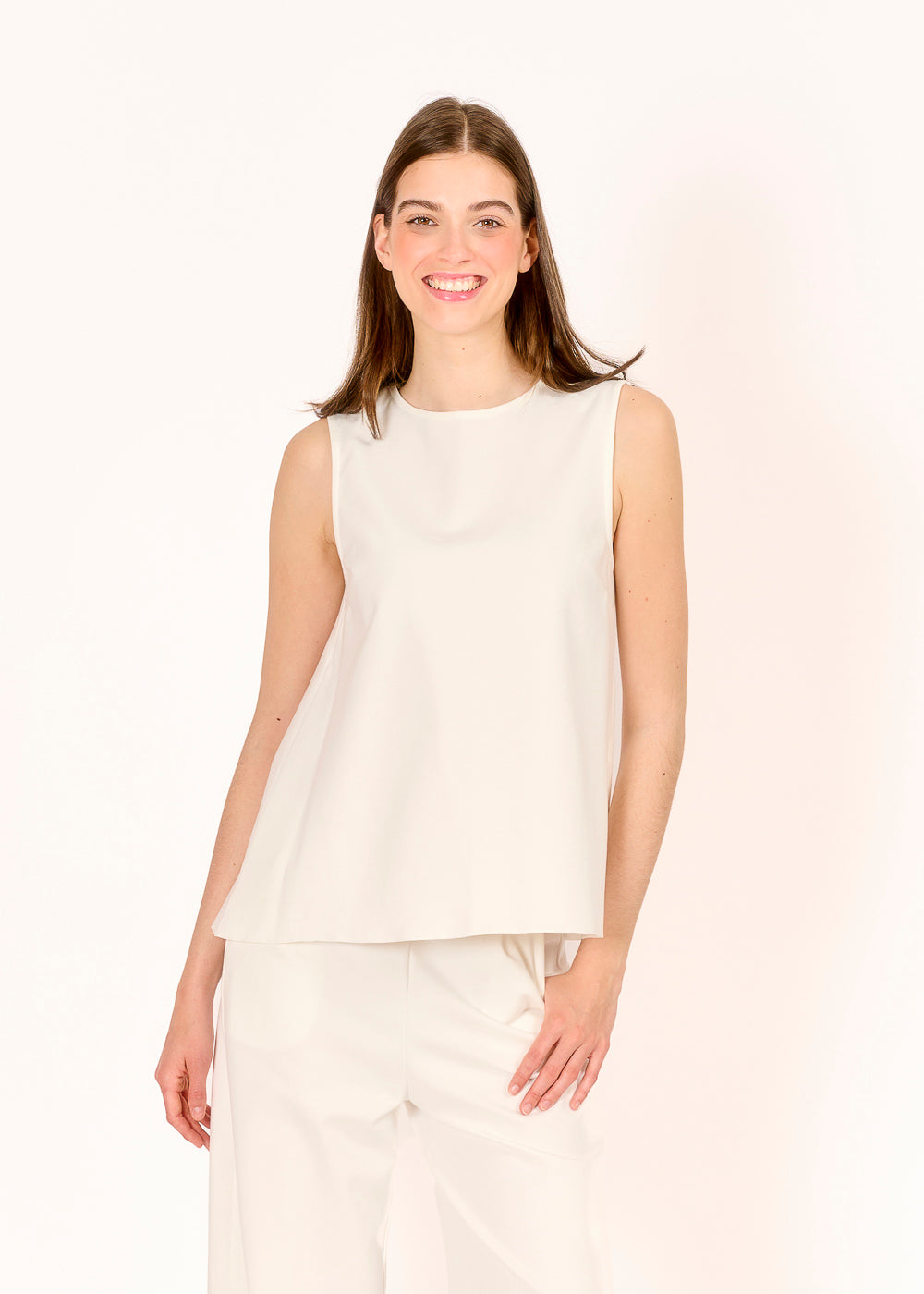 Dieses weiße Top aus Punto di Milano überzeugt mit seiner leichten A-Linie, die für eine schmeichelhafte Silhouette sorgt. Das weiche, elastische Material bietet höchsten Tragekomfort und macht es zu einem vielseitigen Basic für jeden Look.