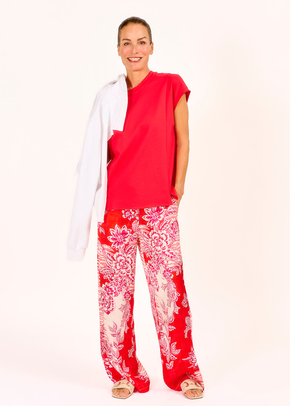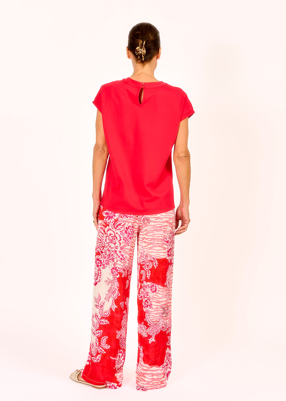 Diese bedruckte Hose überzeugt mit einem gewagten, modernen Muster und bringt frischen Wind in jeden Look. Der gerade Schnitt sorgt für eine schmeichelhafte Silhouette, während die kleinen Eingriffstaschen und der elastische Bund hinten für Komfort und Lässigkeit stehen. Perfekt für alle, die modisch auffallen möchten, ohne auf Bequemlichkeit zu verzichten.