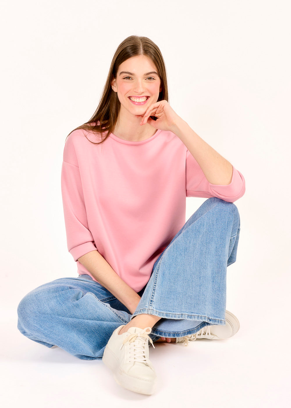 Dieses Kastenshirt in zartem Rosa bringt frische Farbe in deine Garderobe und sorgt für einen modernen, lässigen Look. Der lockere Schnitt garantiert hohen Tragekomfort und passt perfekt zu entspannten Frühlingsoutfits.