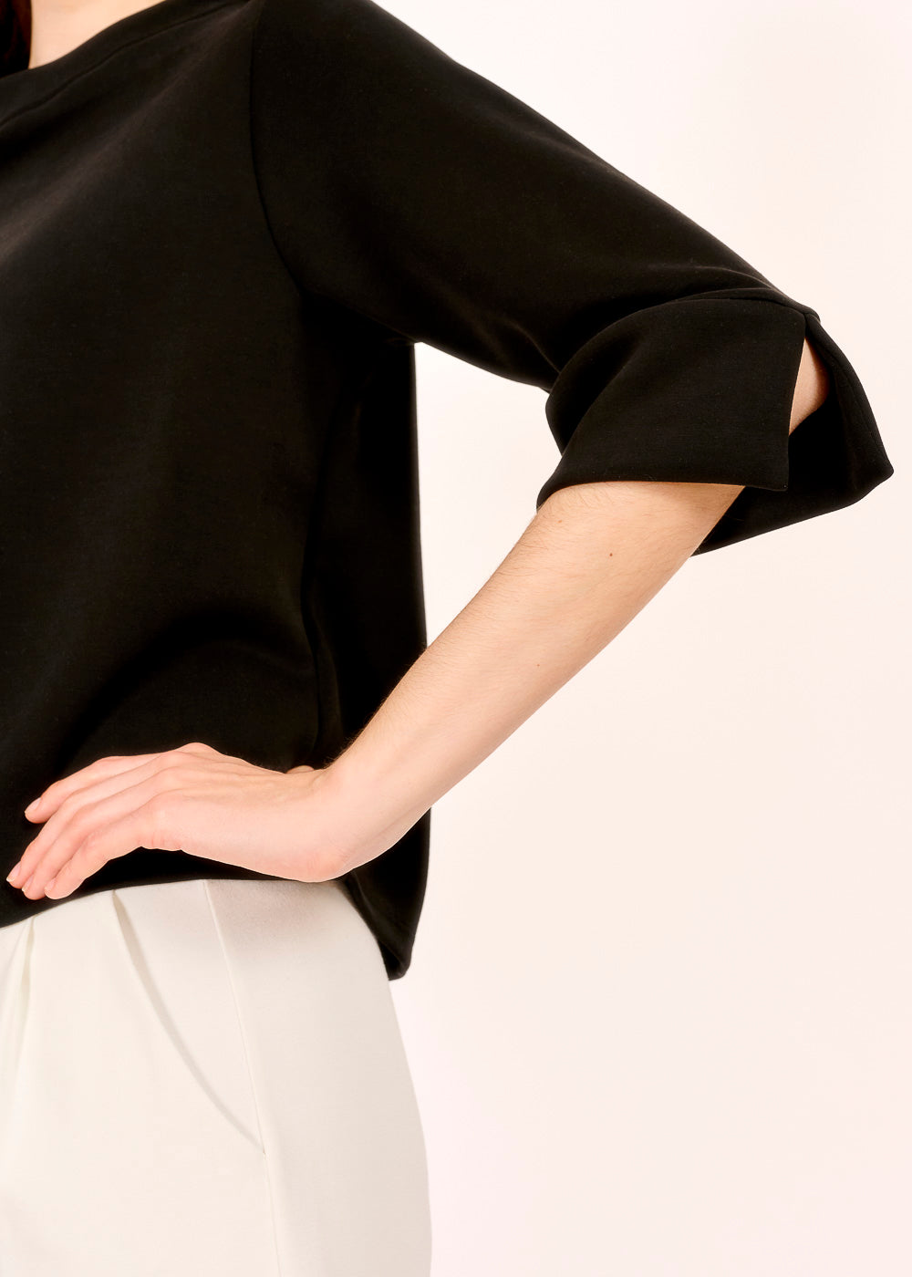 Dieses Kastenshirt in klassischem Nero begeistert mit seinem soften Griff und dem lässigen A-Shape. Der Schlitz auf der Rückseite verleiht dem Design eine moderne, luftige Note.