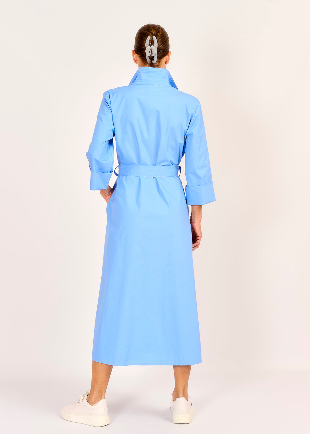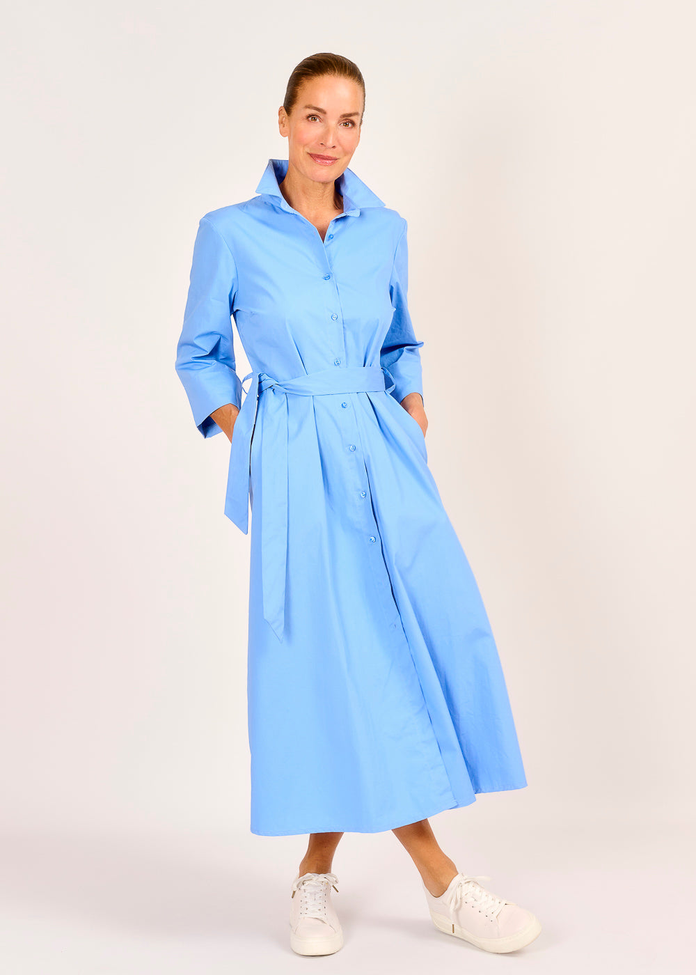 Dieses oversized geschnittene Hemdblusenkleid in einem eindrucksvollen Blauton überzeugt mit seinem entspannten Dreiviertelarm und der offenen Knopfleiste vorn. Der locker fallende Schnitt verleiht dem Kleid eine lässige Eleganz und macht es zum idealen Begleiter für stilvolle Alltagslooks. Mit dem passenden Bindegürtel lässt sich die Silhouette individuell betonen – ein echter Hingucker, ob mit Sneakern oder Sandalen kombiniert.