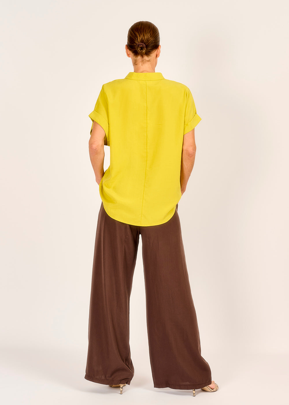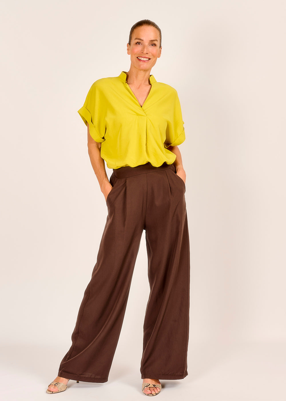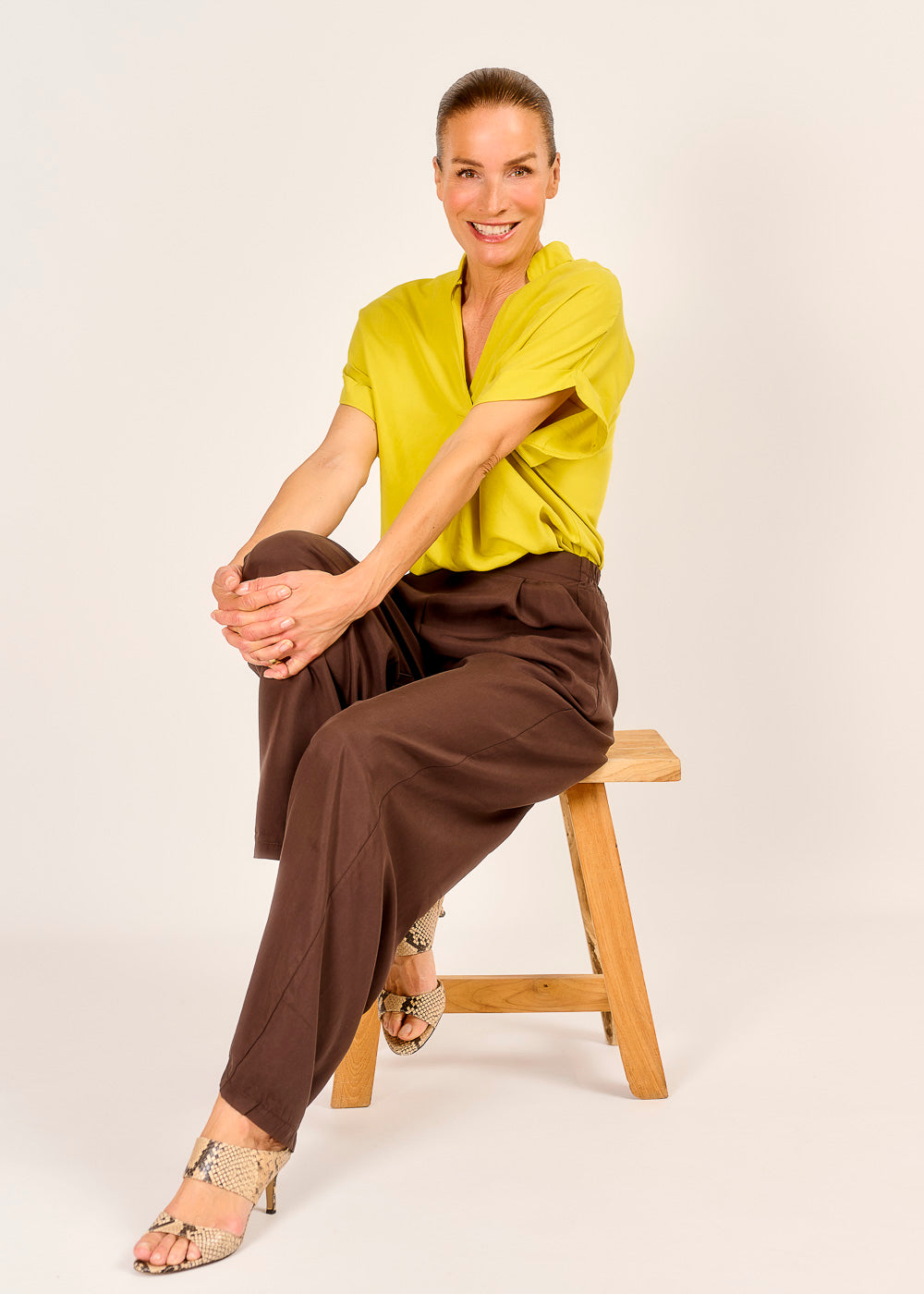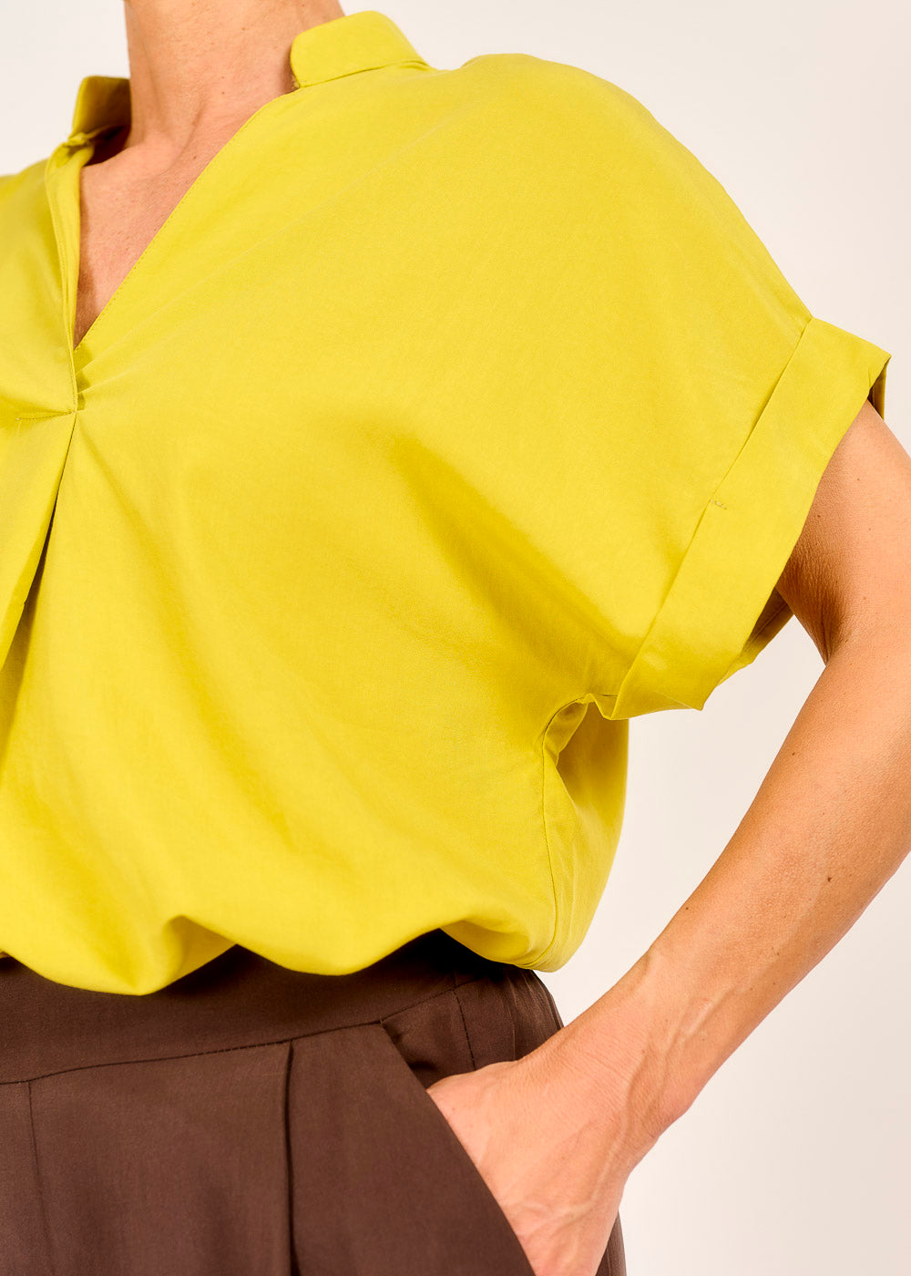 Diese luftige Tunikabluse in strahlendem Lime ist das perfekte Key-Piece für Ihre Sommergarderobe. Der moderne V-Ausschnitt und die weiten Ärmel mit fixierten Umschlägen verleihen ihr eine entspannte Eleganz. Gefertigt aus einem leichten Material, bietet sie höchsten Tragekomfort, selbst an warmen Tagen. Kombinieren Sie diese vielseitige Bluse für einen lässigen Look mit Leinenhosen oder stylen Sie sie schicker für besondere Anlässe.