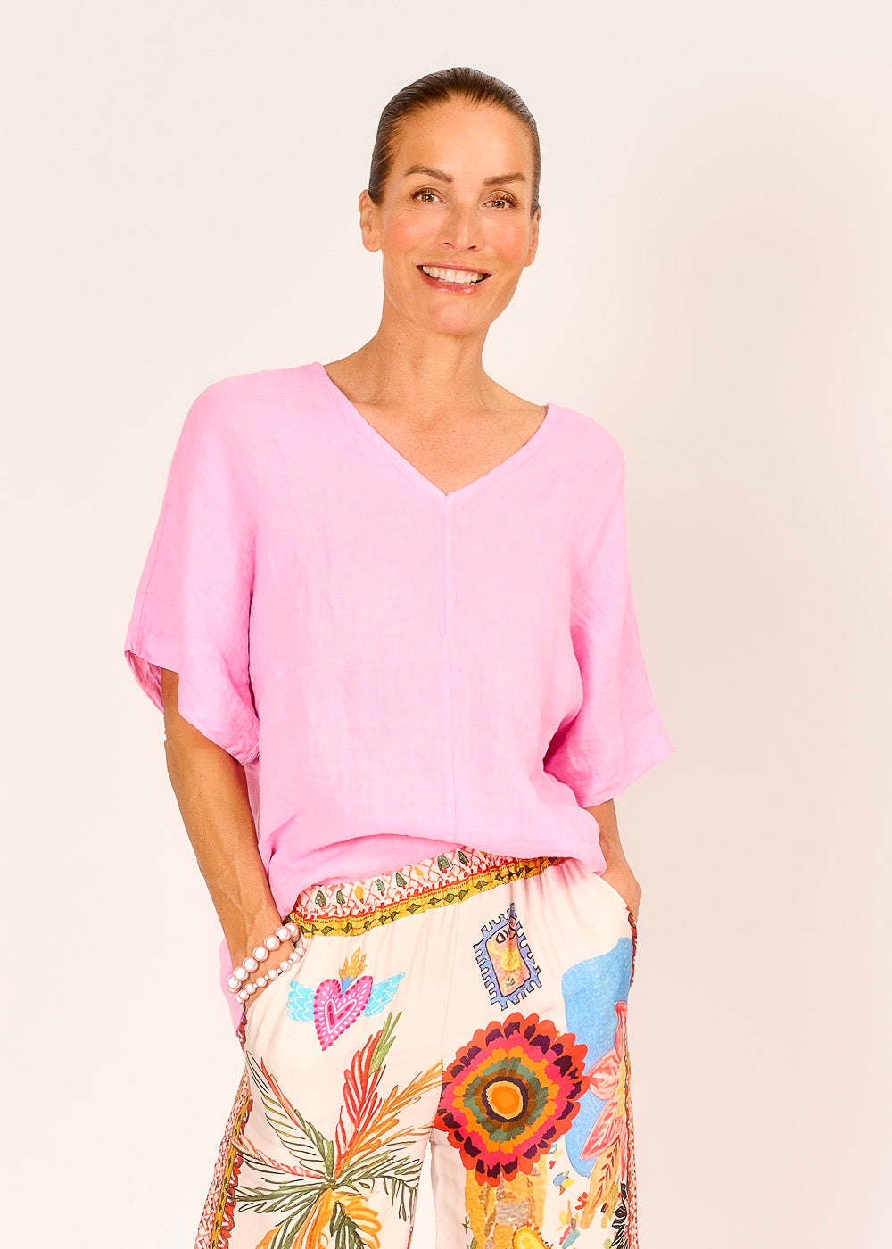 Strahlen Sie Sommerlaune aus mit dieser bezaubernden Leinentunika in zartem Rosa! Der luftige Leinenstoff und der lässige Schnitt sorgen für ein wunderbar leichtes Tragegefühl, ideal für warme Tage.