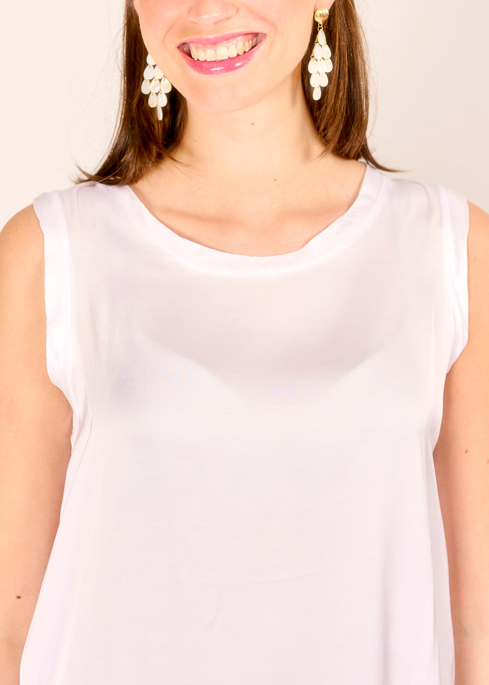 Dieses luxuriöse Satintop in strahlendem Weiß ist ein wahrer Allrounder, der jedem Outfit eine elegante Note verleiht und sich wunderbar zu vielseitigen Looks kombinieren lässt. Sein schmeichelhafter Schnitt und der zarte Glanz des Satins sorgen für einen Hauch von Glamour, der sowohl im Büro als auch am Abend überzeugt. Genießen Sie den seidigen Komfort und die stilvolle Ausstrahlung dieses Tops, das Ihre Garderobe perfekt ergänzt.