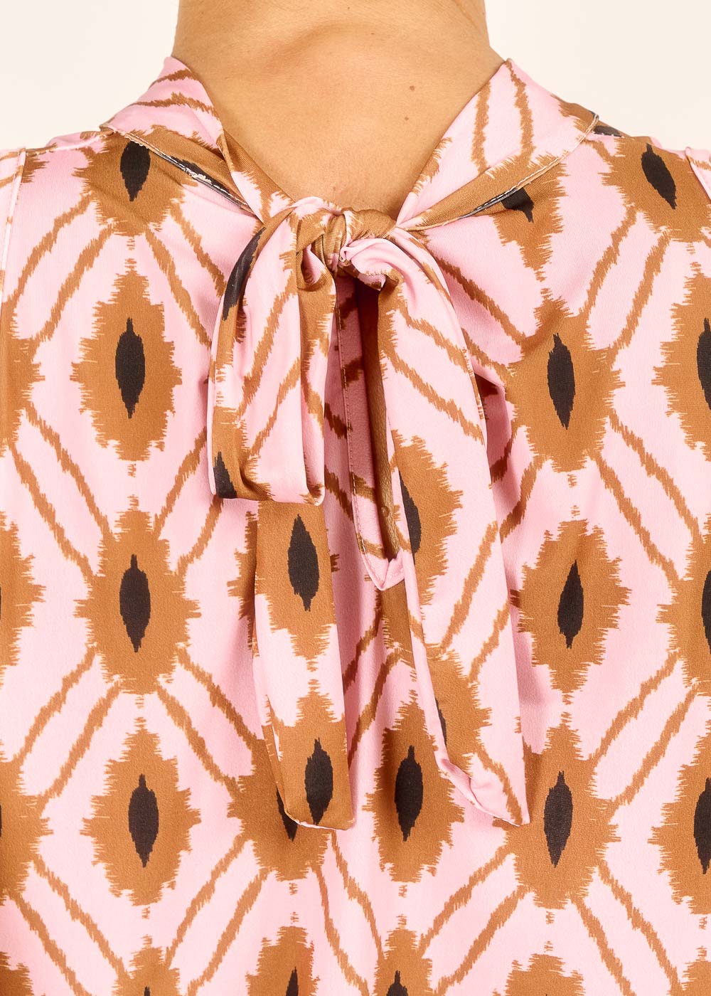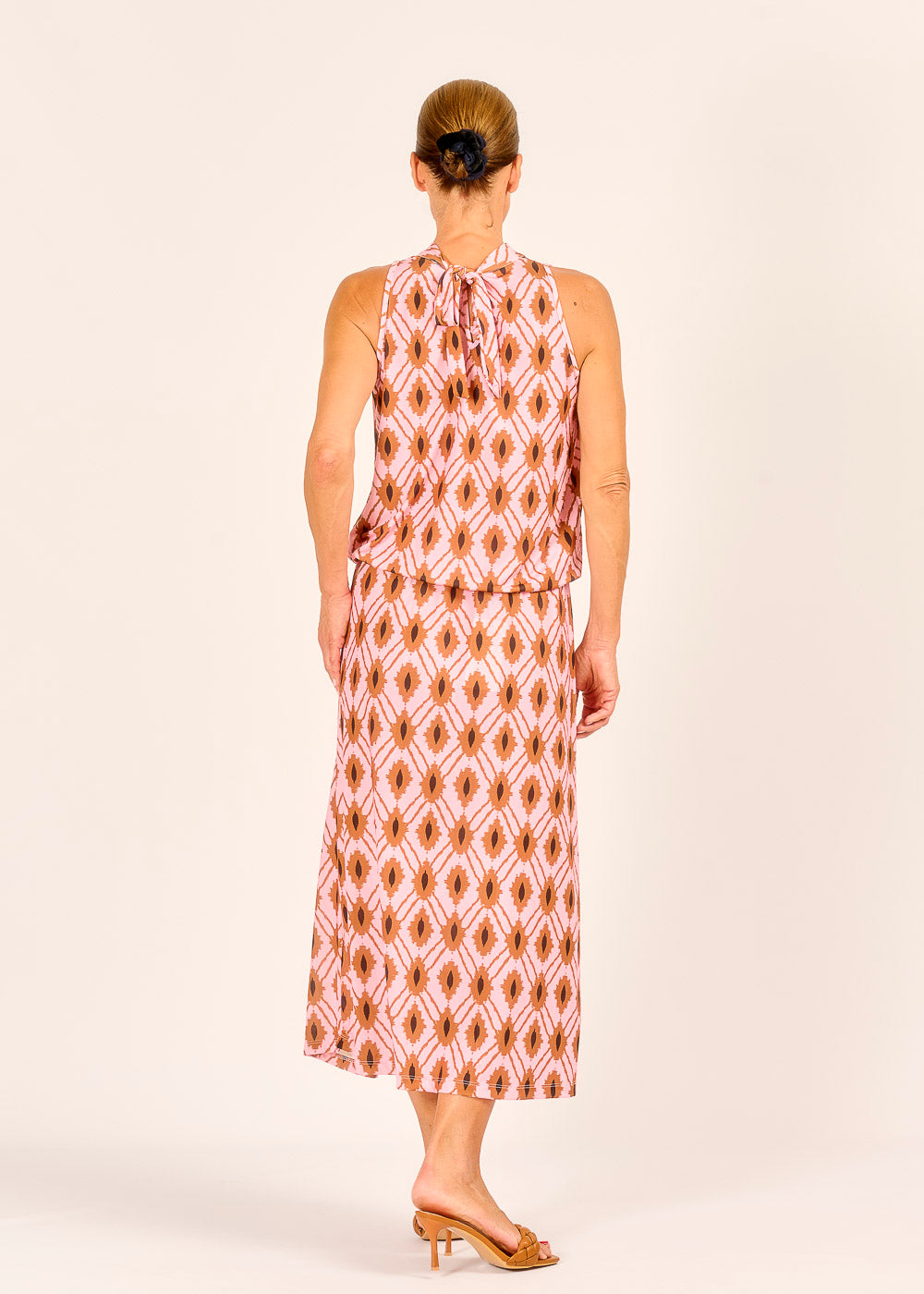Dieses bezaubernde Neckholdertop besticht durch sein einzigartiges Muster, das sommerliche Leichtigkeit versprüht. Der elegante Neckholder-Schnitt und das fließende Material sorgen für einen stilvollen Auftritt und hohen Tragekomfort, ideal für warme Tage und Urlaubsreisen. Kombinieren Sie es mit einer schlichten Hose oder einem Rock, um das auffällige Design in den Mittelpunkt zu rücken.