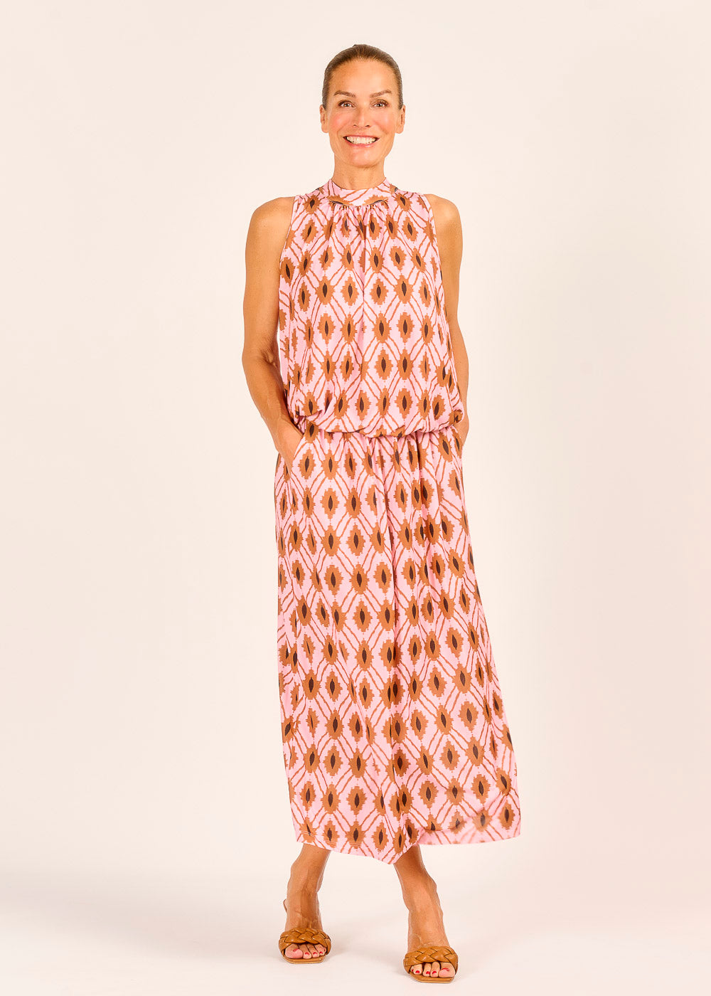Dieser fließende Rock mit seinem einzigartigen Muster in zarten Rosé- und Erdtönen ist ein echter Blickfang, der spielerische Eleganz versprüht. Der leichte Stoff und der bequeme Gummizug sorgen für optimalen Tragekomfort und eine wunderschöne Silhouette, die bei jeder Bewegung mitschwingt. Perfekt für einen entspannten Sommerlook oder stilvoll kombiniert für einen besonderen Anlass.
