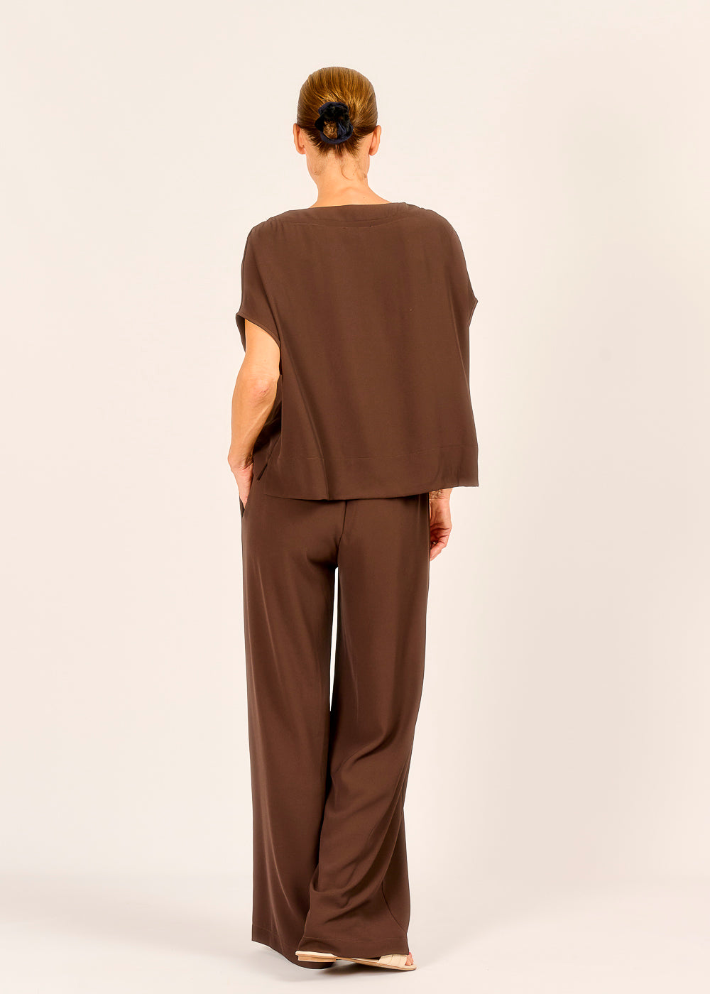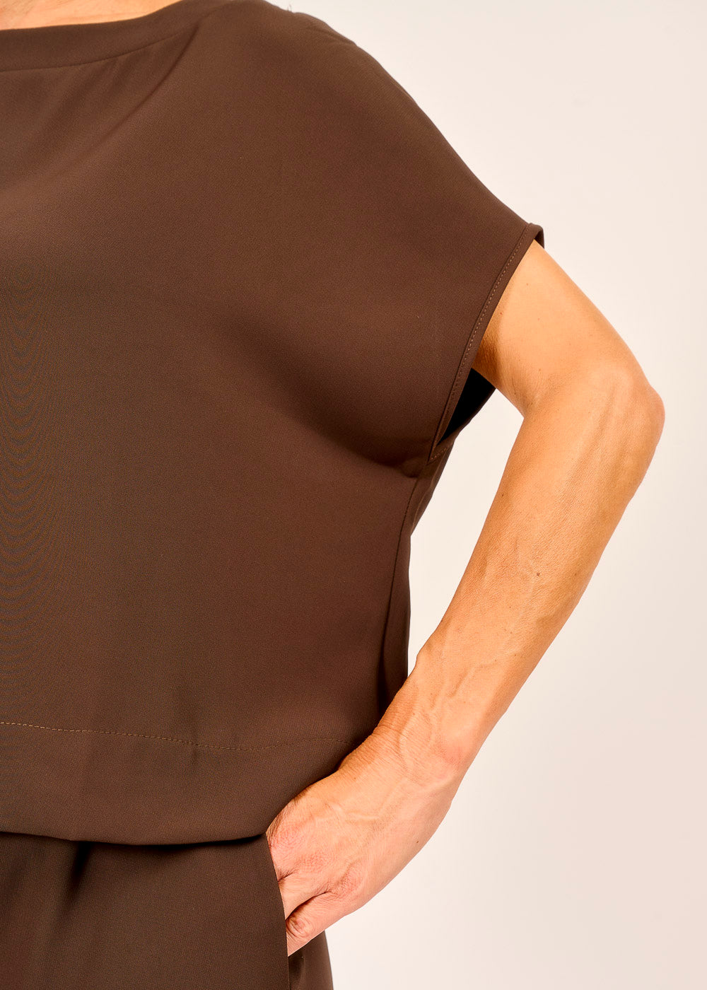 Dieses edle Shirt in der trendigen Farbe Moka ist ein wahrer Hingucker, der schlichte Eleganz perfekt verkörpert. Sein fließender Schnitt und das hochwertige Material sorgen für einen luxuriösen Fall und ein angenehmes Tragegefühl, das den ganzen Tag über begeistert. Ob solo oder als stilvolle Ergänzung zu einem Ensemble, dieses Shirt verleiht jedem Look eine besondere, edle Note.