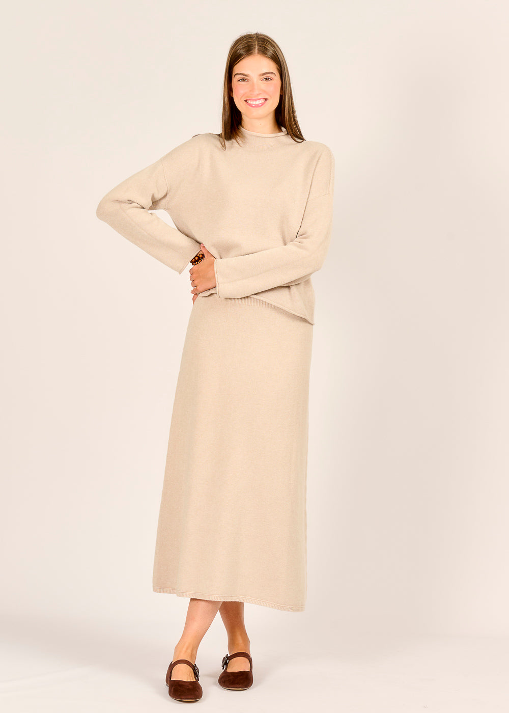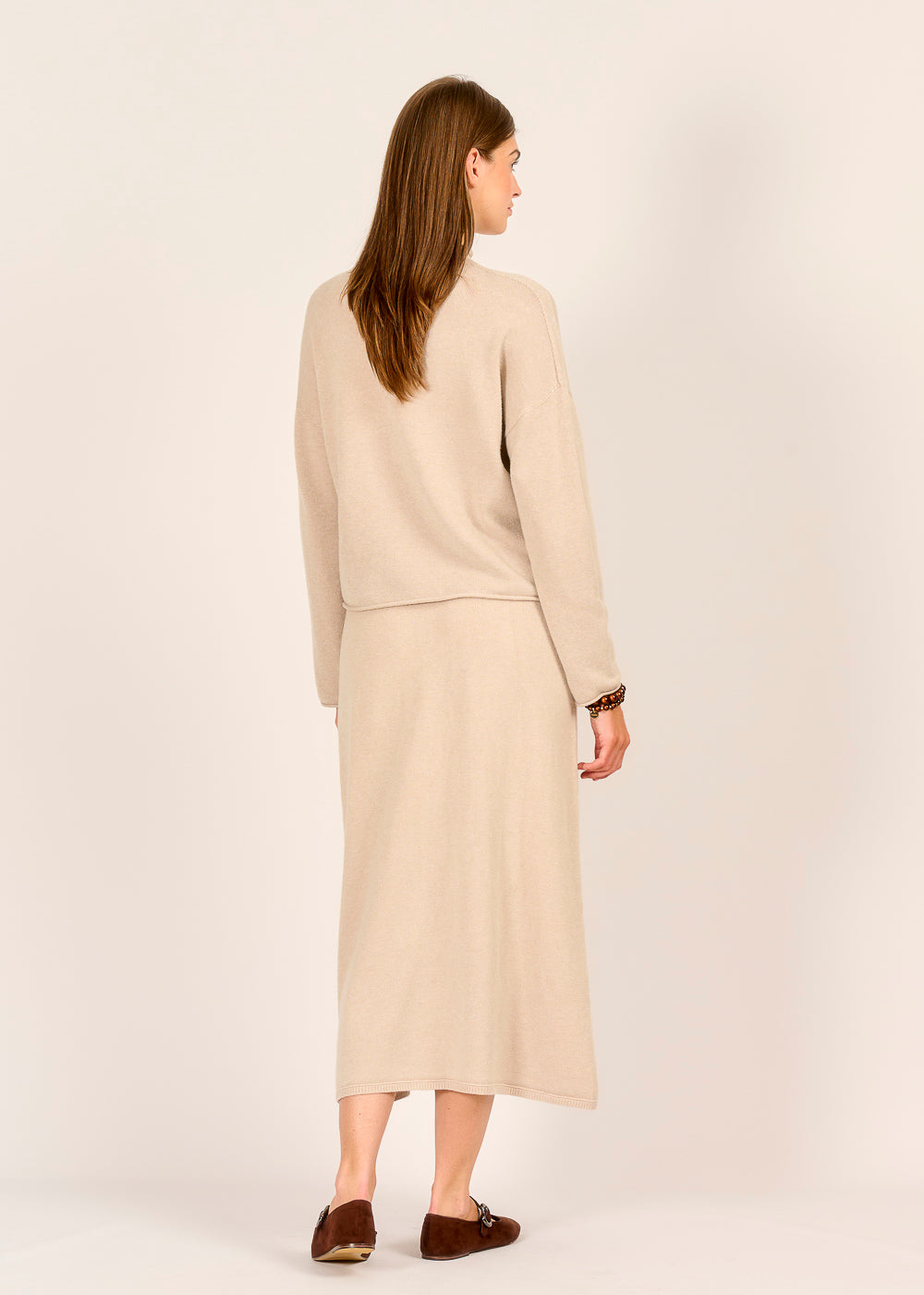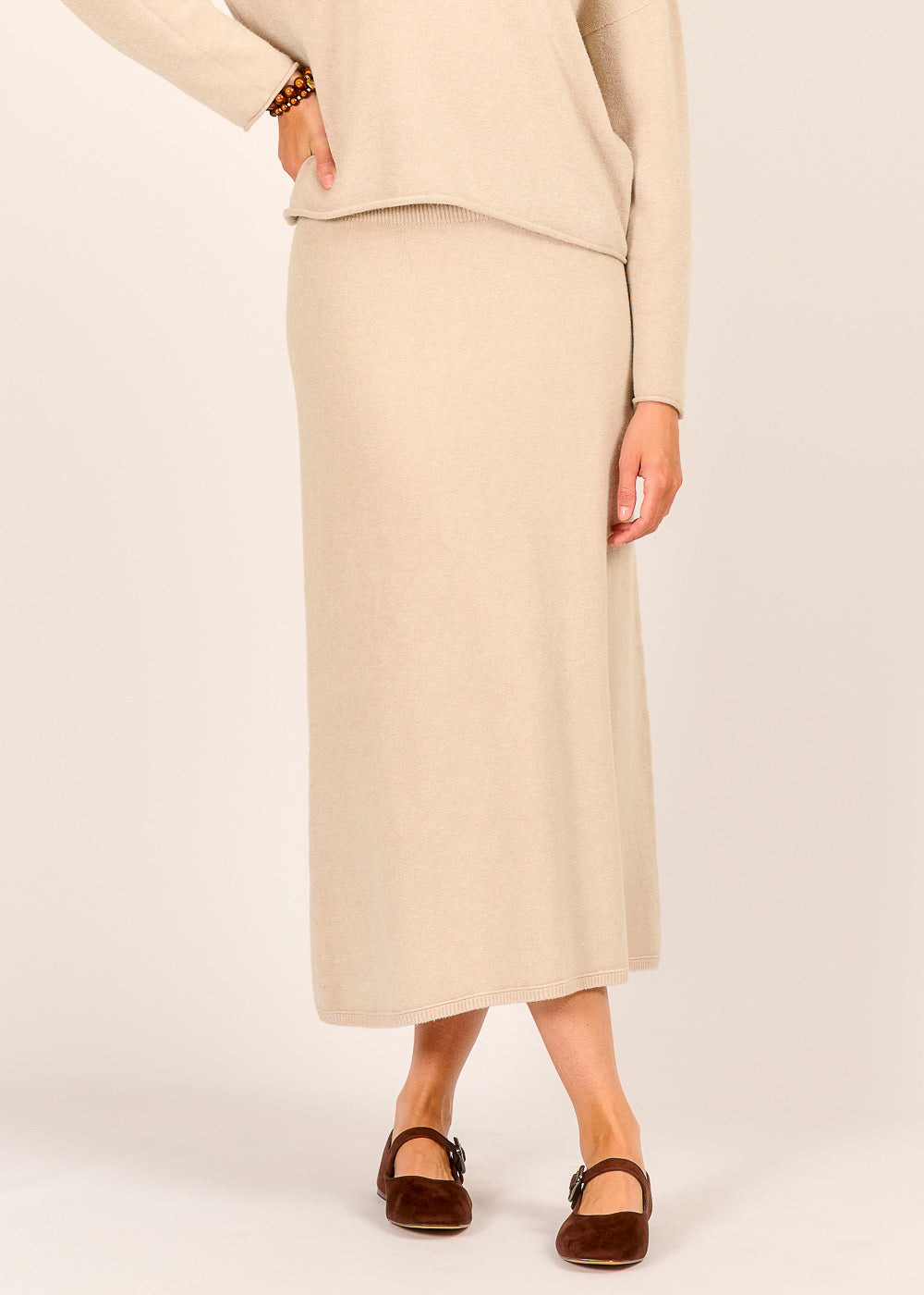 Ein stilvolles Essential für einen eleganten und bequemen Look: Dieser Strickrock in zartem Elfenbein umspielt sanft die Figur. Die A-Linien-Form und das weiche Material bieten höchsten Tragekomfort und eine schmeichelhafte Silhouette. Ein vielseitiges Kleidungsstück, das sich perfekt mit dem passenden Pullover oder einer schlichten Bluse kombinieren lässt.