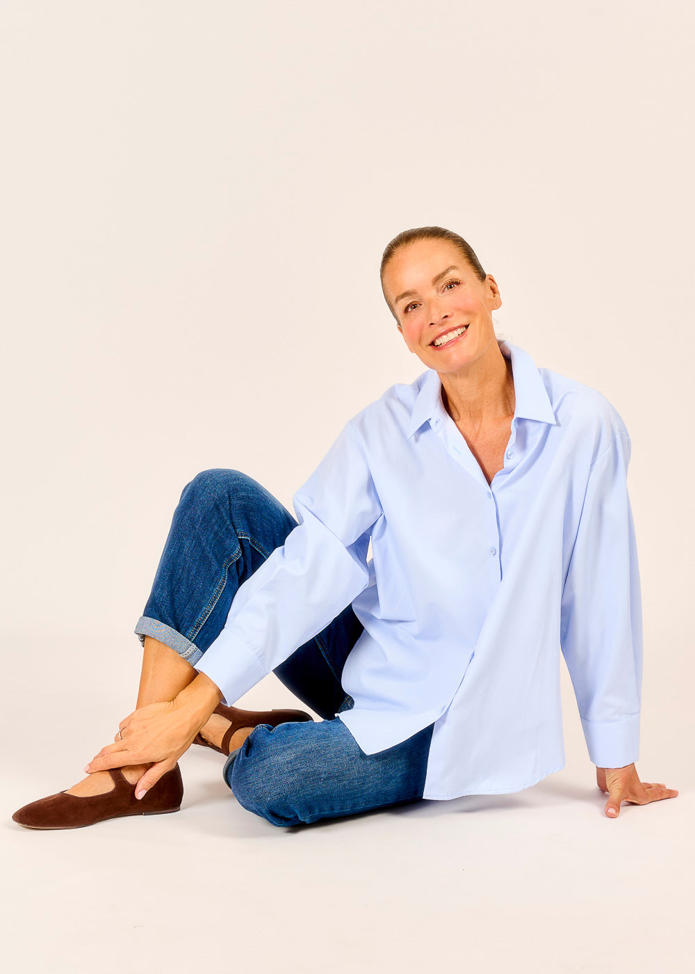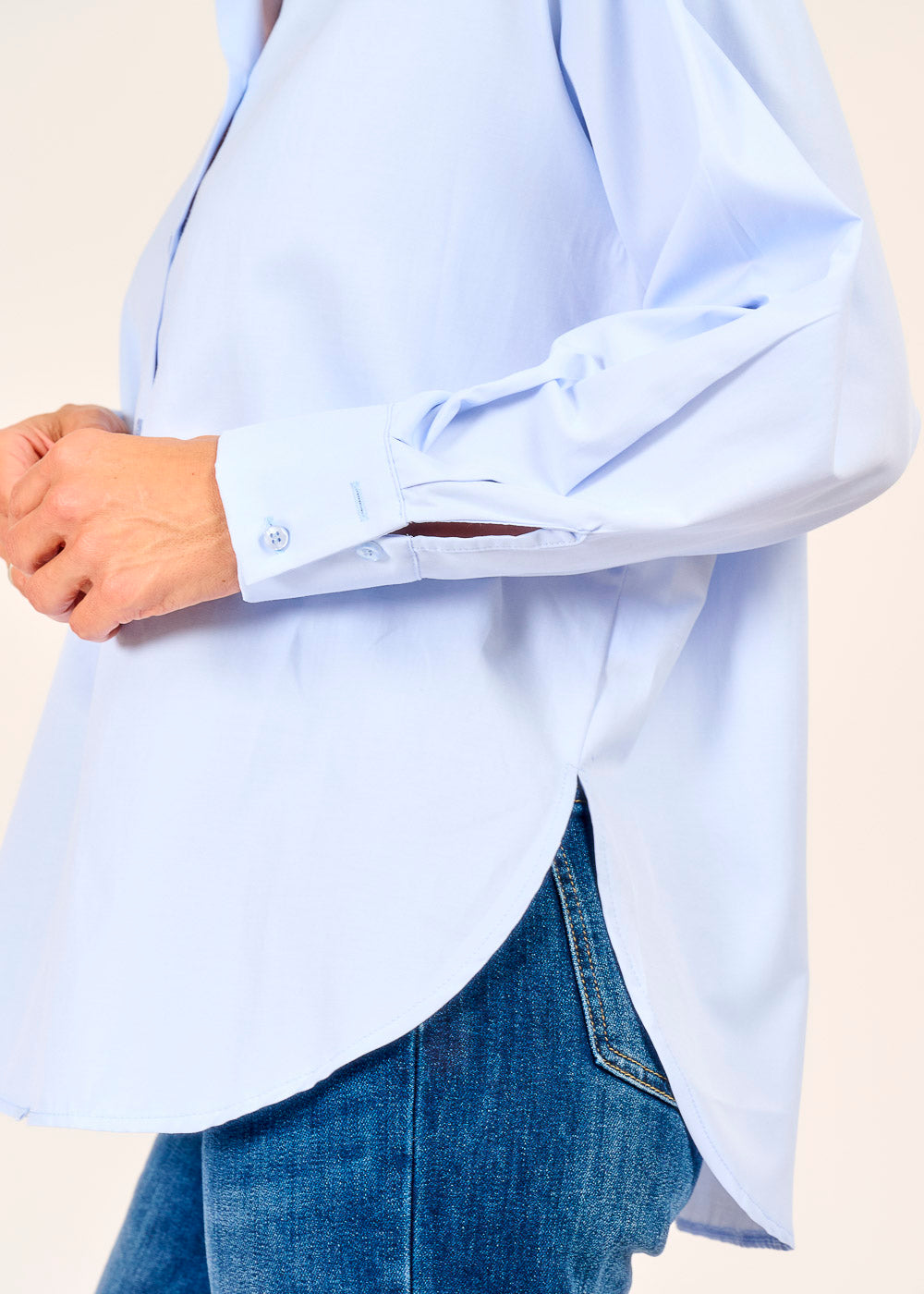 Unsere klassische Bluse in elegantem Business-Blau verbindet zeitlose Eleganz mit modernem Schnitt. Der hinten etwas längere Saum sorgt für eine schmeichelhafte Silhouette und verleiht jedem Outfit einen Hauch Raffinesse. Perfekt für Büro, Meetings oder stilvolle Casual-Looks – vielseitig kombinierbar für jeden Anlass. Mit klaren Linien und hochwertigem Material wird sie schnell zu deinem neuen Lieblingsstück im Kleiderschrank.