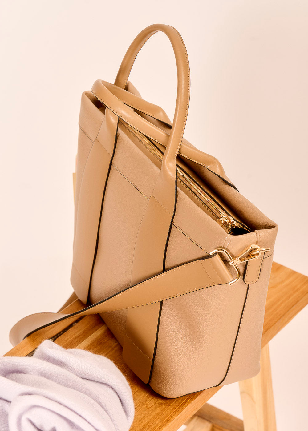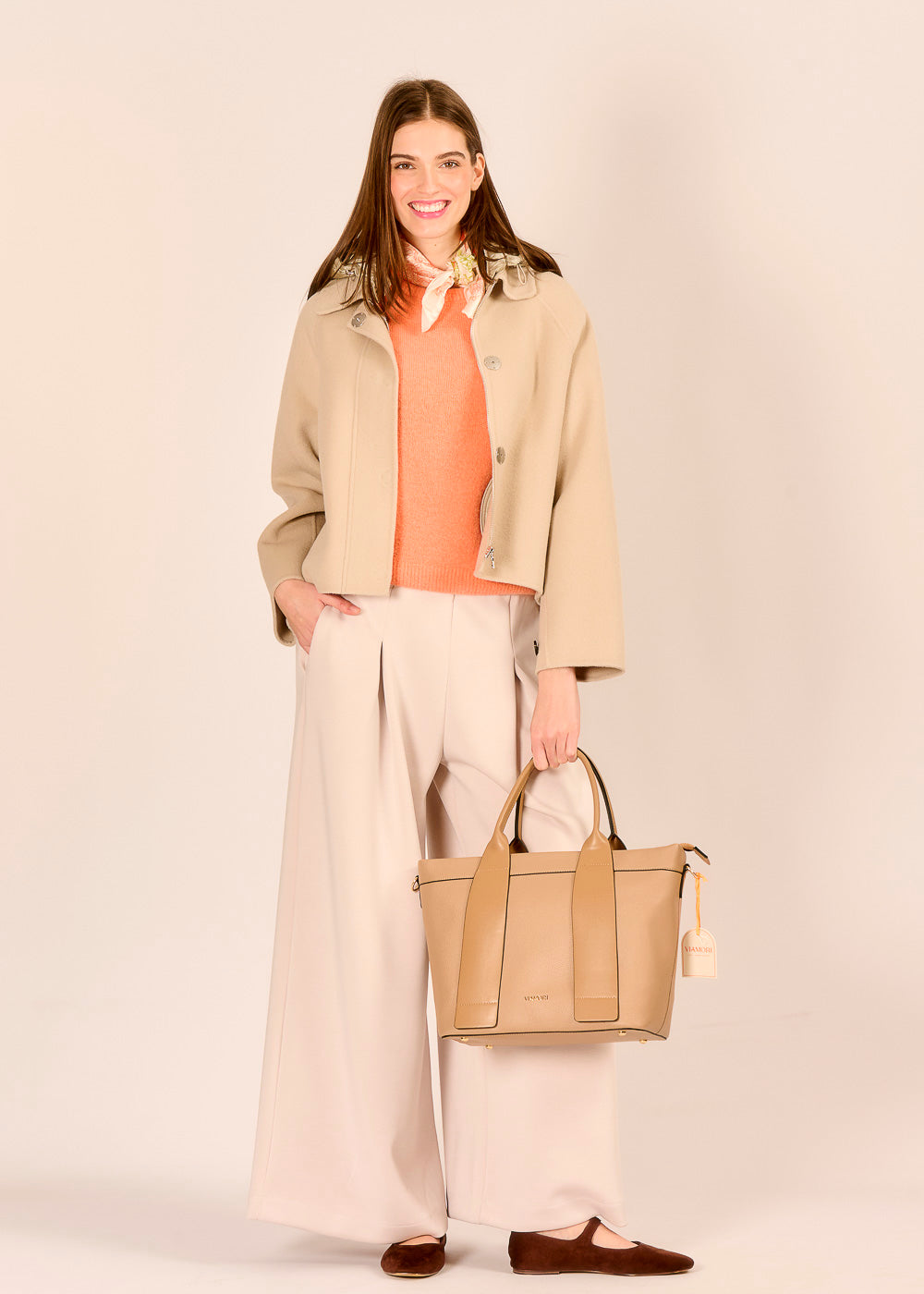 Dank des warmen Naturtons und goldener Details bringt diese VIAMORI Tasche Ruhe in deinen Look. Sie vereint Funktionalität mit Raffinesse und ist ein eleganter Begleiter für alle, die italienische Ästhetik schätzen.