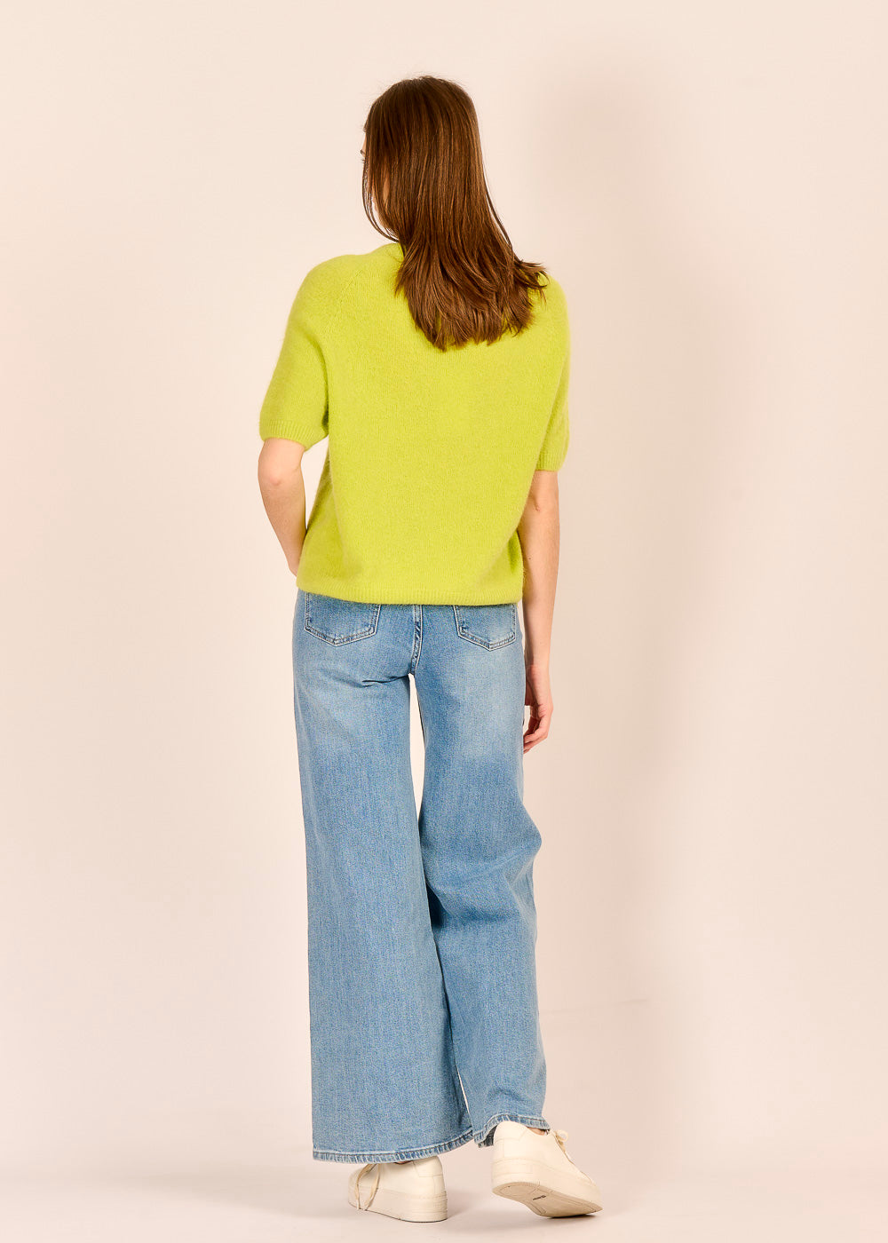 Der Halbarm-Strickpullover mit Babyalpakawolle erinnert an Pistazieneis unter italienischer Sonne. Fein gestrickt und wunderbar weich umhüllt er dich an kühlen Übergangstagen.